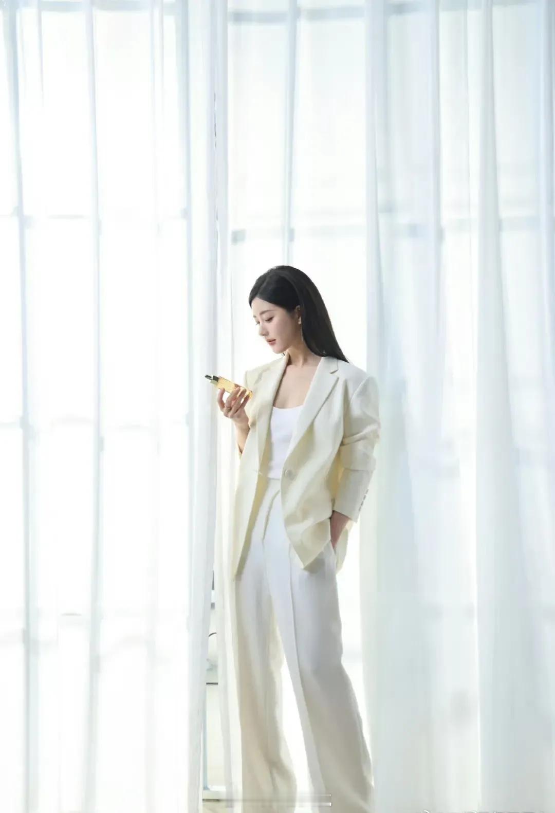 我最喜欢她穿白西装这张,御姐范儿十足。