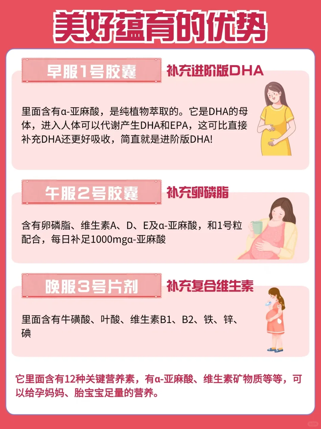 了解到这么多,很多准妈妈对于孕期营养素谈之色变,整个孕期都在补各种补品,吃的小 片比饭都多,我一胎时也是这样,直到二胎发现了美好蕴育润康才知道有多香,一版就能简单搞定孕期所需营养!!现在三胎也是接着吃!