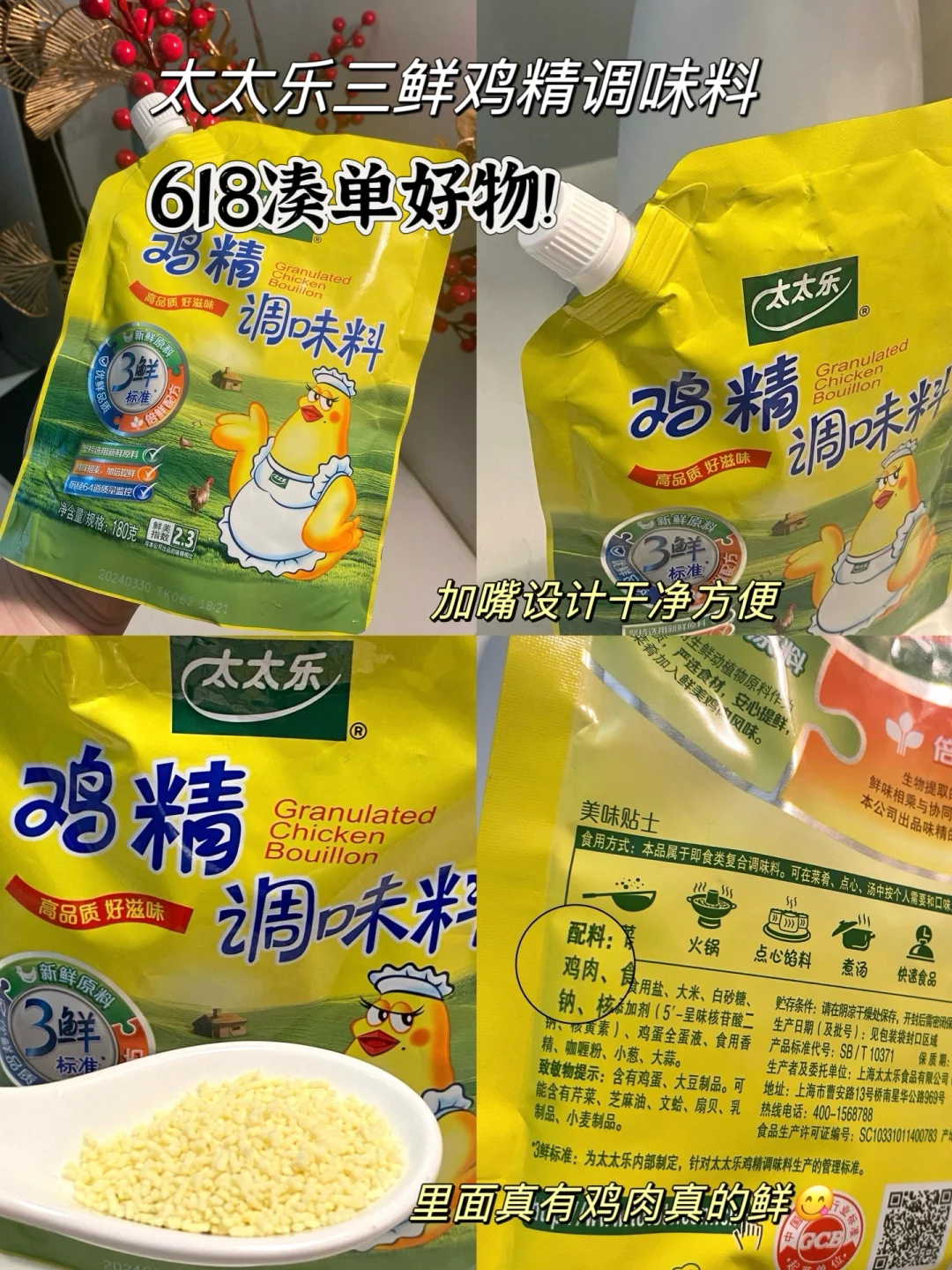 最近618,购物时可以把太太乐鸡精作为凑单神器一并加购,买回来尝尝看~