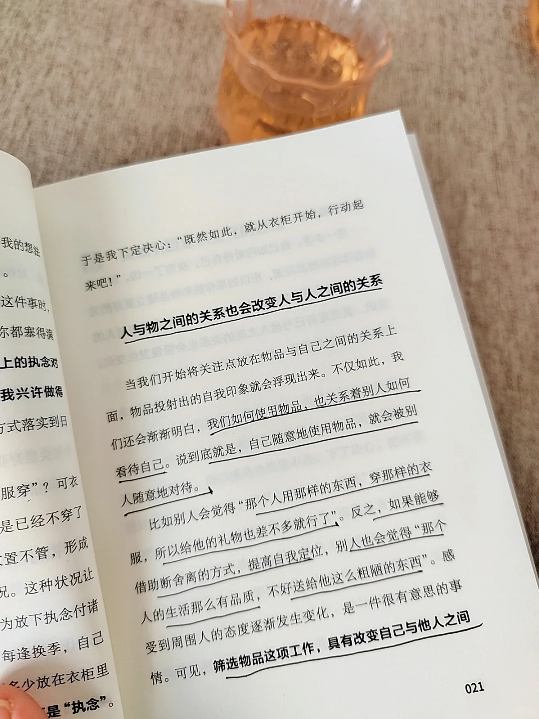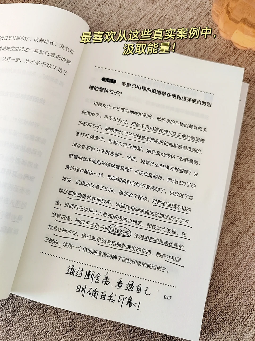 就像书中说的枝女士,对那些品质不错的物品能够痛快放手,但对于粗制滥造的东西反而恋恋不舍…原来在她的潜意识里,她总是自我贬低,感觉廉价的才适合自己相配的…