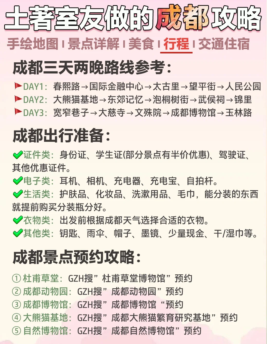 成都室友整理的旅游攻略👍超干货哦(自用版)