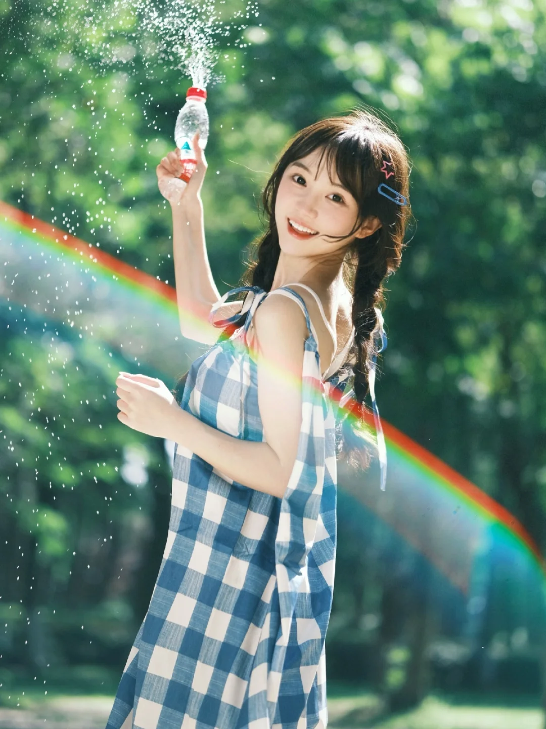 夏天当然要玩水啦🫧💦 今天的氛围感是不要💰的矿泉水瓶给的~ 一秒入夏啦 大家赶快去试试📷 👧拍照tips🌟 ☁️在瓶子上扎洞 可以分散一点 不用扎太多 ☁️时间选择下午4点之后 逆光拍出来真的超级好看🫧水珠都在发光 ☁️一定要用反光板喔 否则脸会很黑 ☁️服装上可以选择蓝色系或者亮色系 富士拍出来很绝 ☁️彩虹光就是拍照的时候把太阳拍进去 就会有啦 📷富士xt4 滤镜:NC胶片模拟 白平衡:R-2 B-2 色彩-2 曝光补偿➕2 颗粒效果:关 色彩效果:弱