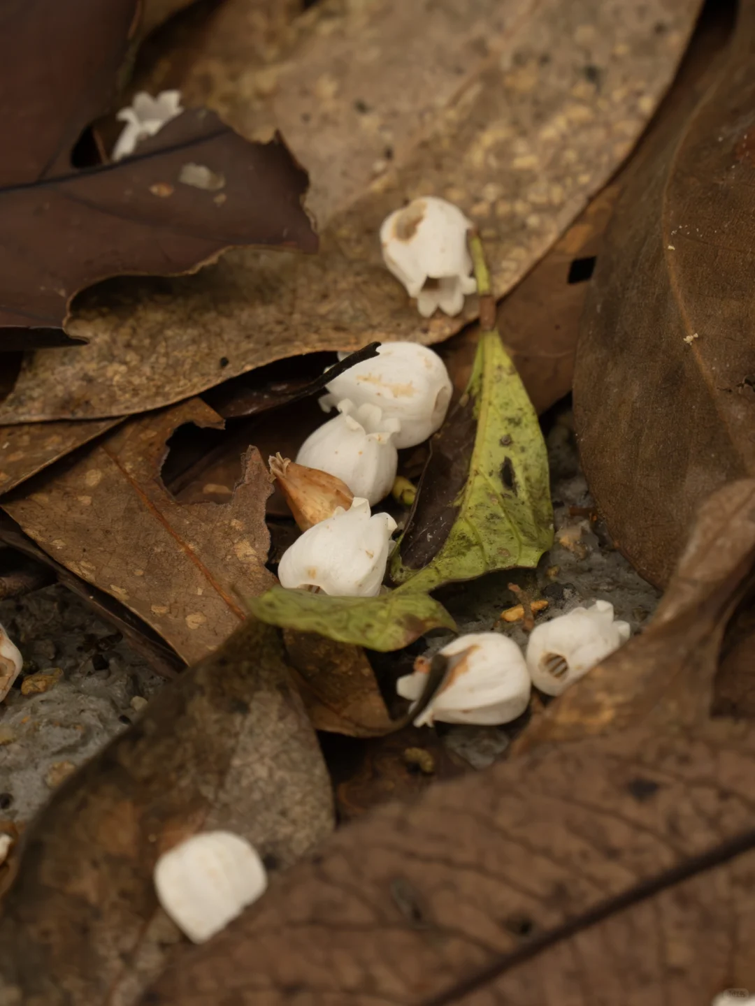 前阵子去韶关的山林里,刚好是四月底,山里的春花已经完成了今年的绽放,樱花结出了青绿色的果实,堇菜们也长出了一个个小子弹样的种子,静静地躺在果实里,等待着一个时机就远行。行走在步道上,路上落满了一朵朵的白色小花,捡起一朵瞧了瞧,还真像一个小小的小铃铛呀。