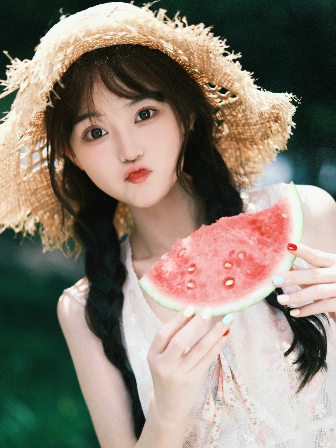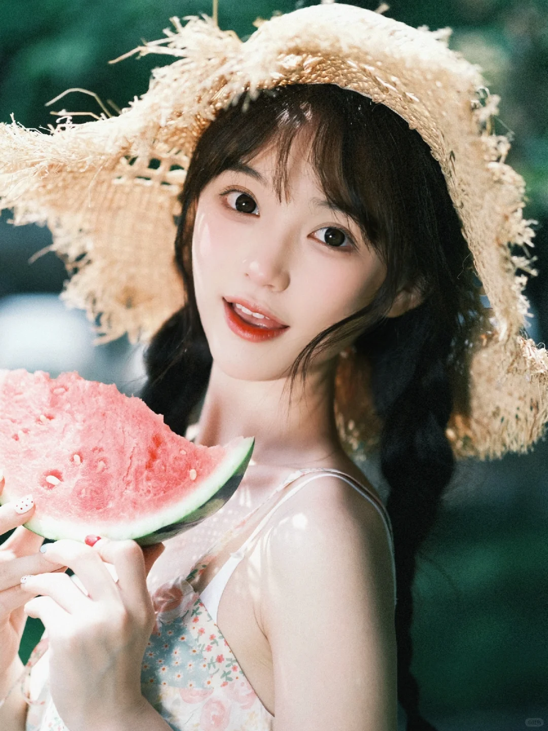 富士➕西瓜拍照太太太好看啦🍉🍃 日系感满满 有一种胶片的感觉嘿嘿嘿 这个世界没有甜妹转不了一点 夏天当然要拍西瓜啦~富士直出的快乐拥有咯 👧