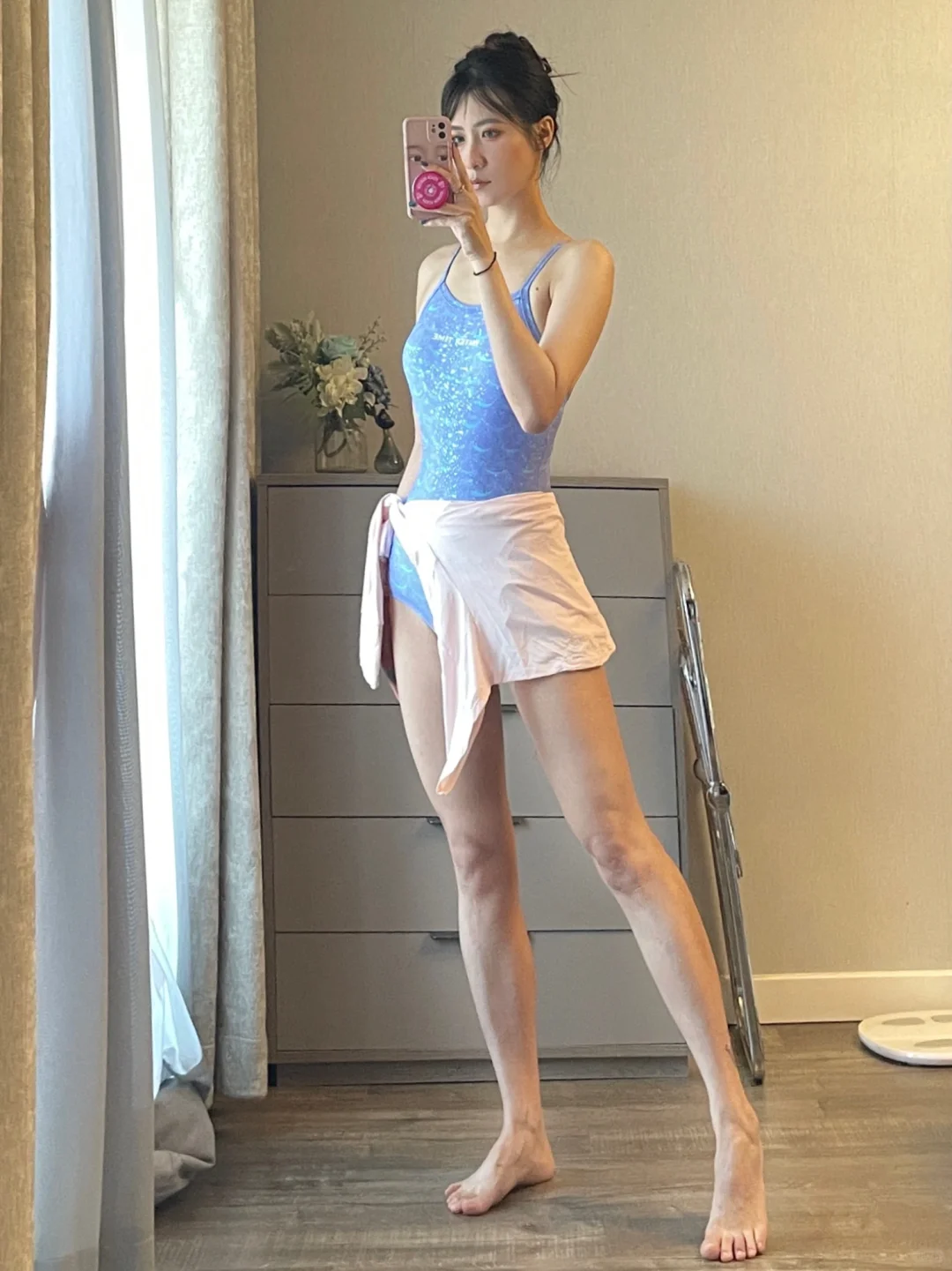 这年头,元气姐姐不游泳都out了,穿紫贝壳泳衣是为了钓大数据的吧?防晒衣一披,时尚博主既视感,就差教人怎么浮不起来了