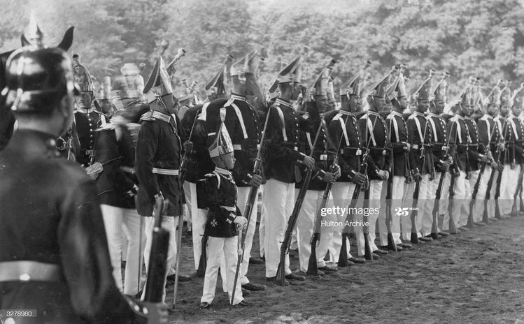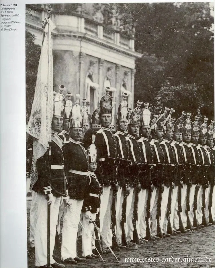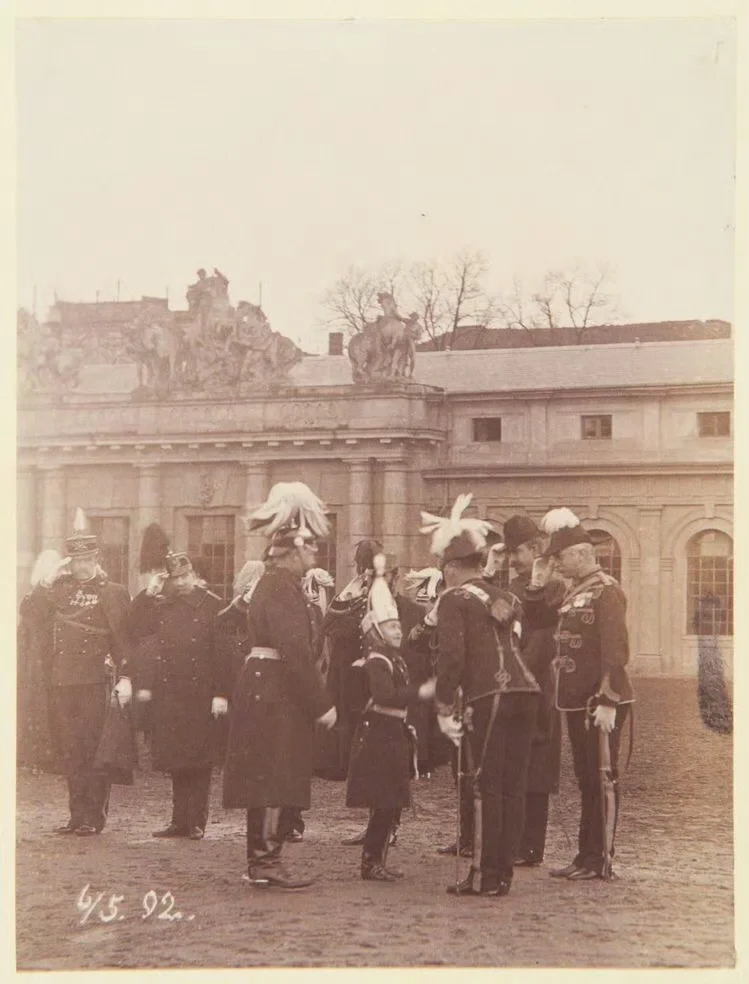 童年时代的德国皇储威廉身着军装参加军队活动。图2为1892年威廉皇储10岁生日当天被父亲威廉二世正式介绍给军队,皇储从这一天起被正式授予军衔。