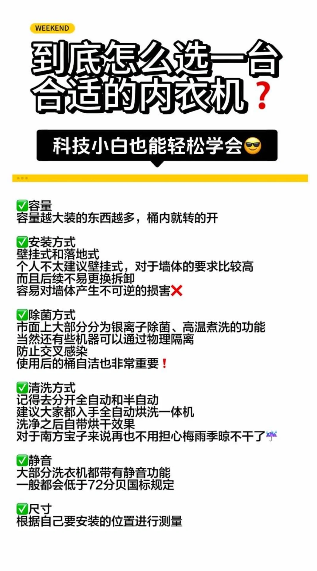 自从搬了新家以后,大大小小的内衣,洗衣机也换了不下五台!再选内衣,洗衣机这方面还算是小有成效😎今天整理了三台使用过后体验感综合性能都不错的内衣洗衣机👙快来看看到底怎么挑选合适的内衣洗衣机了👀