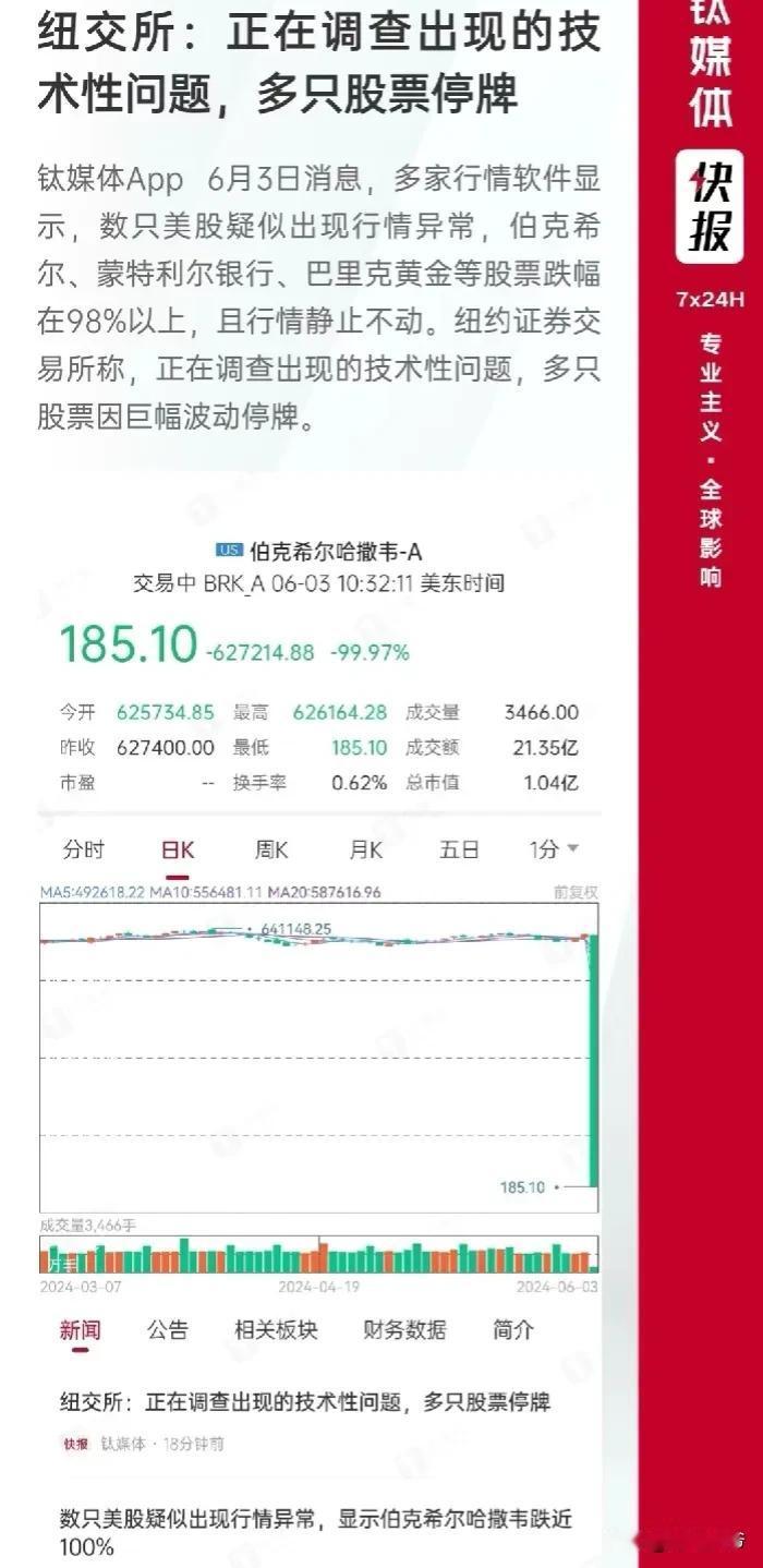 树欲静而风不止,想不到美股也有今天,6月3日,在纽交所上市的伯克希尔等多支股票跌幅达98%,真是风水轮流转呀,这回终于轮到大漂亮国了[灵光一闪][灵光一闪][灵光一闪]