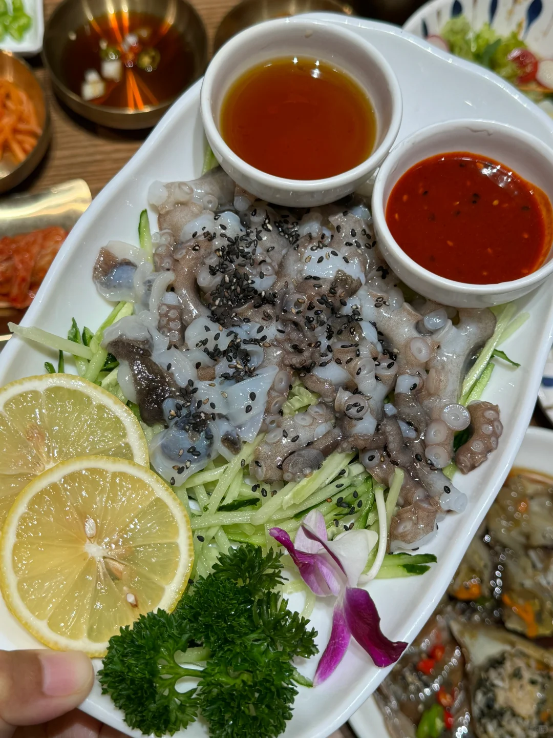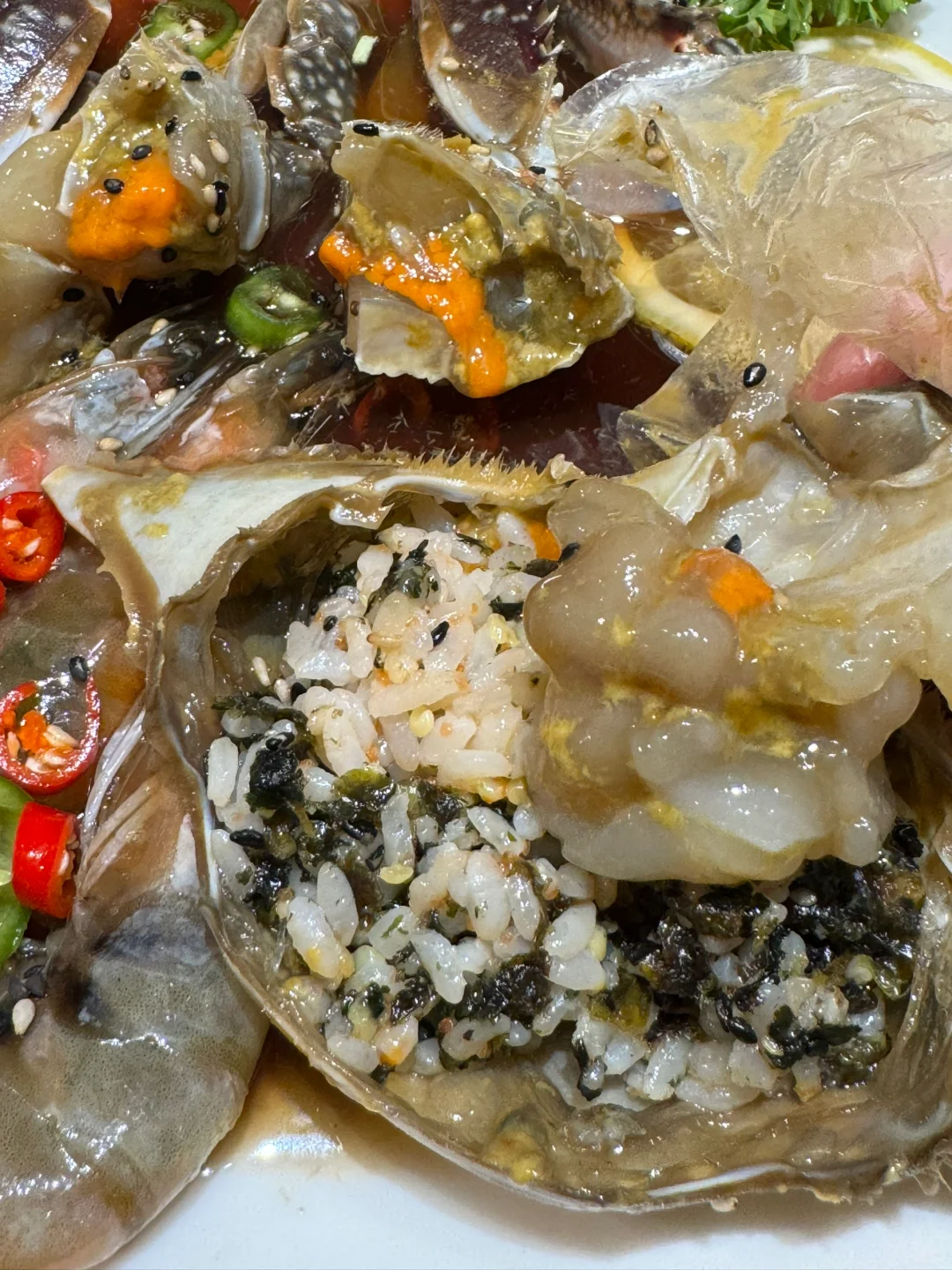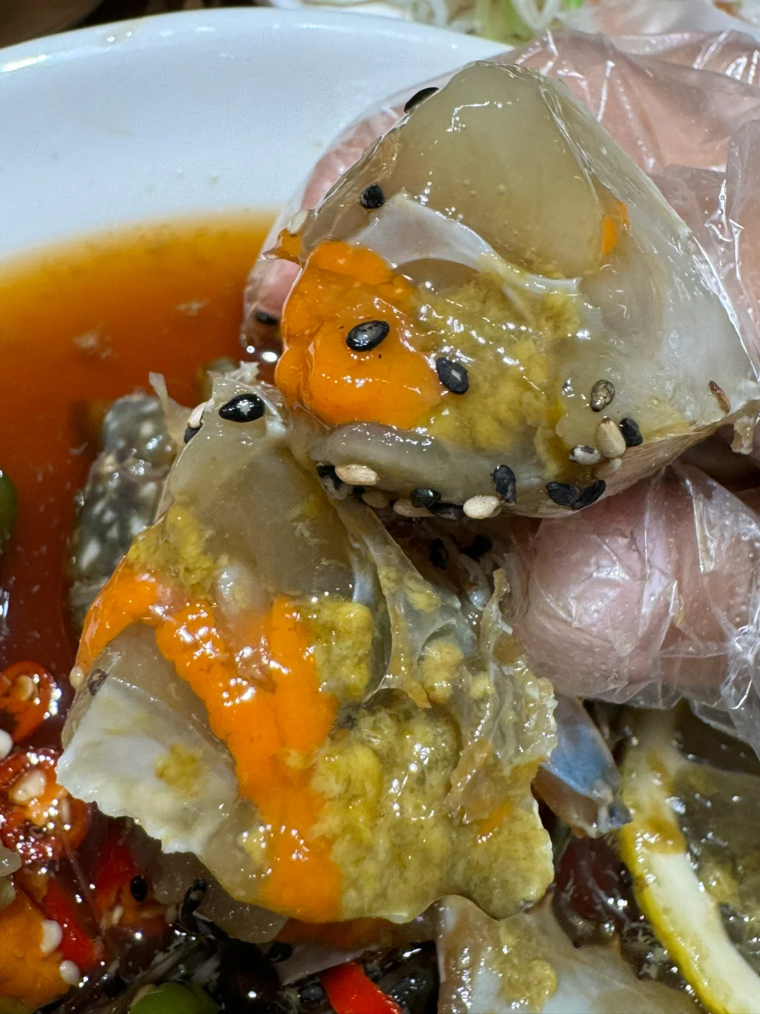 逛街时候看到的新店、海鲜饼、酱蟹、活章鱼,青花鱼、烤肉👍
