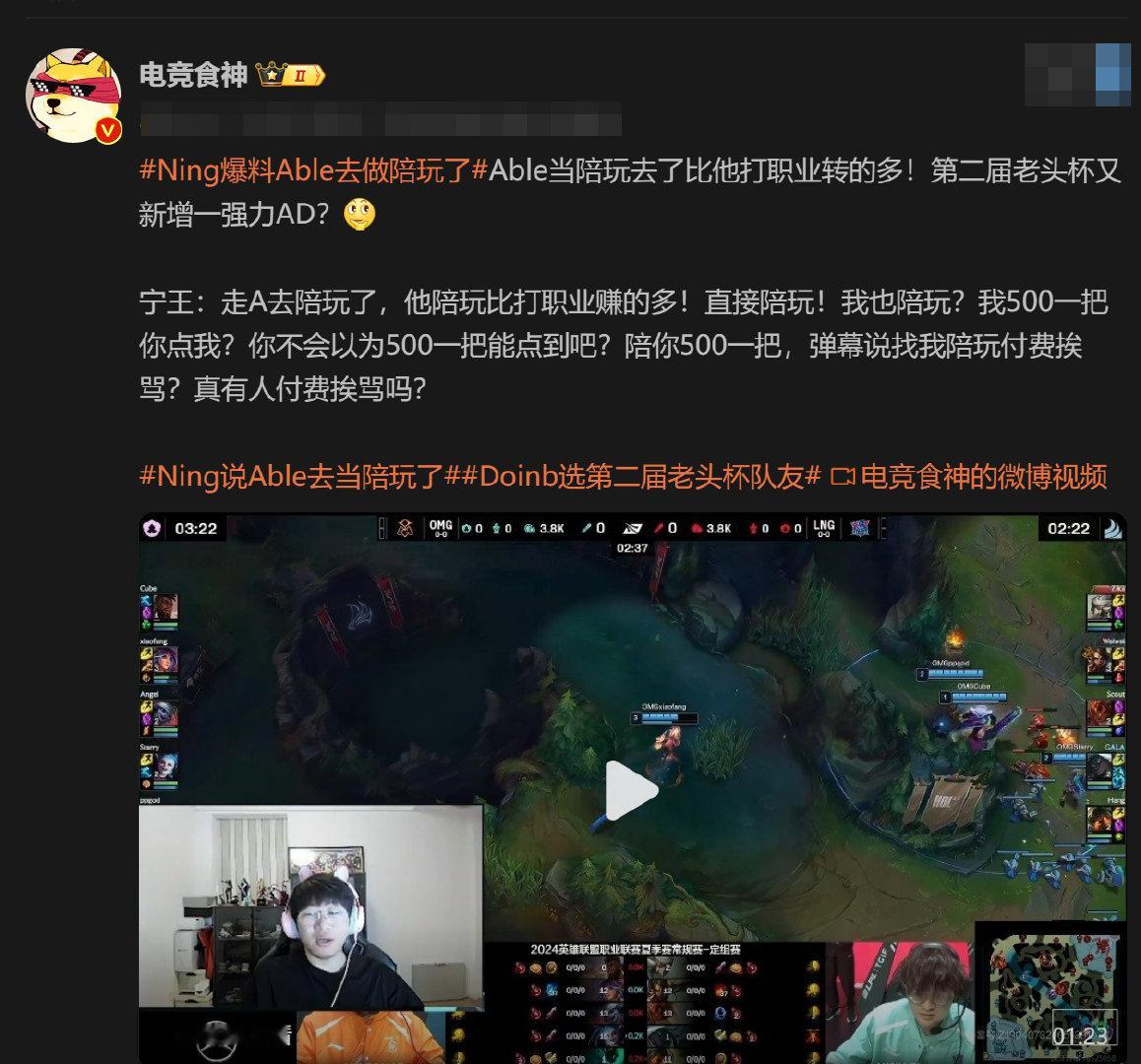 #TheShy发博感谢粉丝##Ning爆料Able去做陪玩了##Ning说Able去当陪玩了#