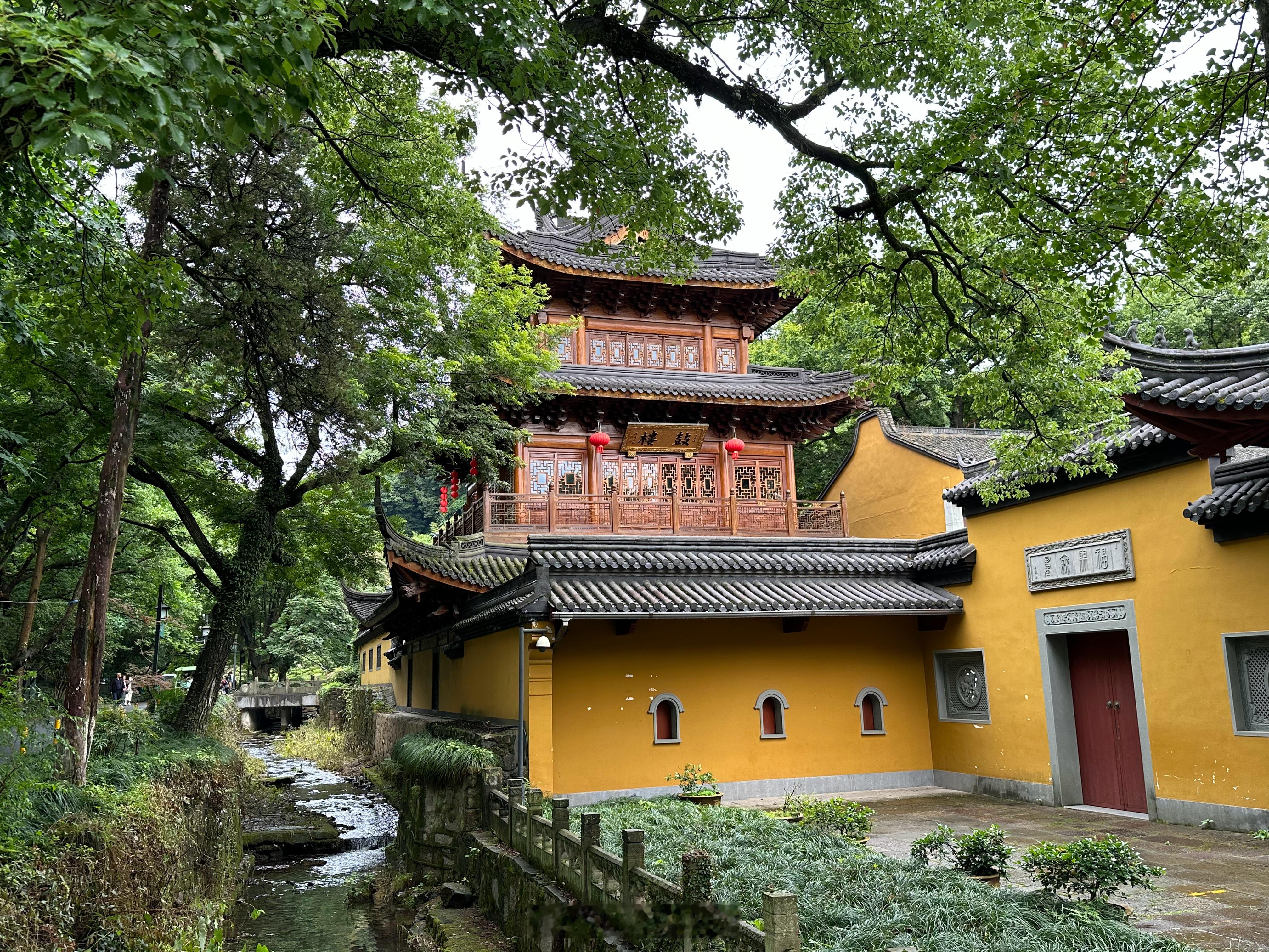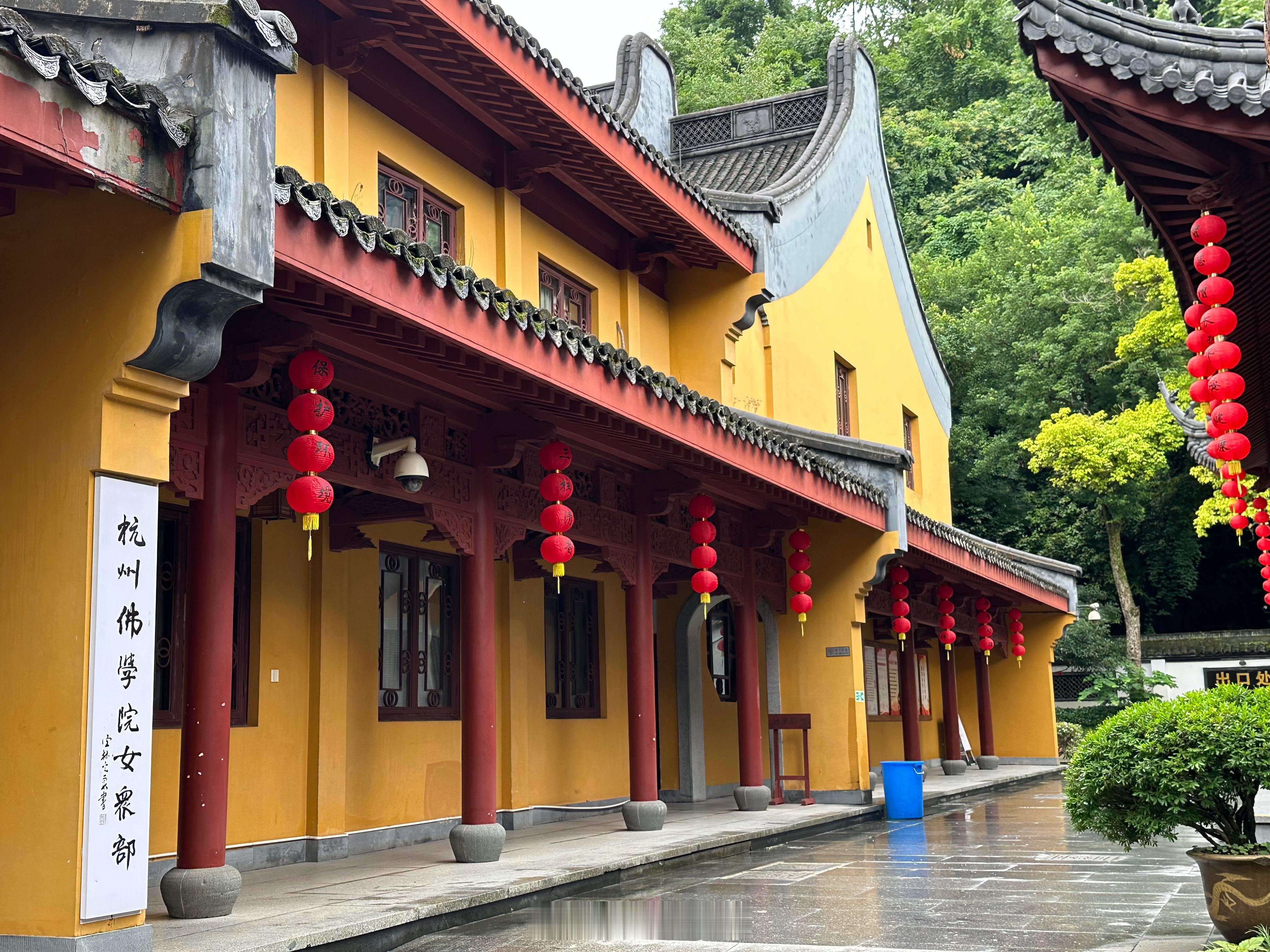 💃🏻吃完早餐,细雨中散步,走到法镜寺。这里没什么游客,安安静静的,也是杭州佛学院女众部上课的地方。遇见比丘尼们在做功课,我俩毕恭毕敬的在旁边听闻,虽没什么悟性但很愿意沉浸其中。