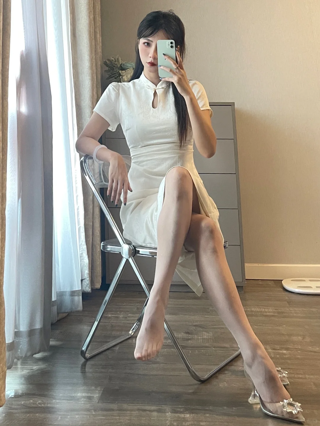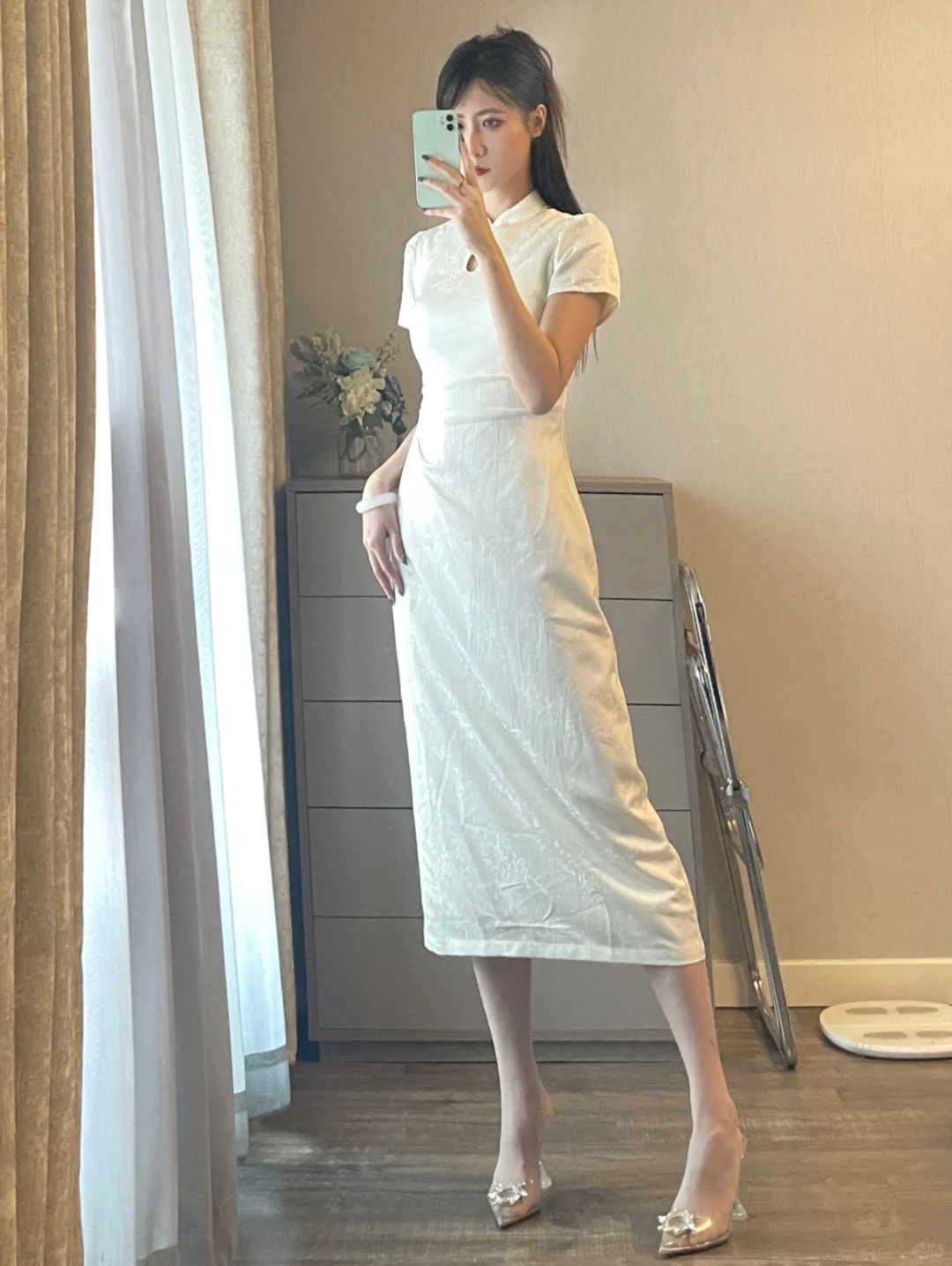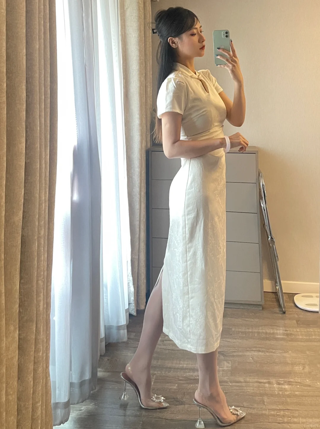 大数据请把我推给喜欢新中式的姐妹 白色长款旗袍搭高跟鞋整个气质拿捏