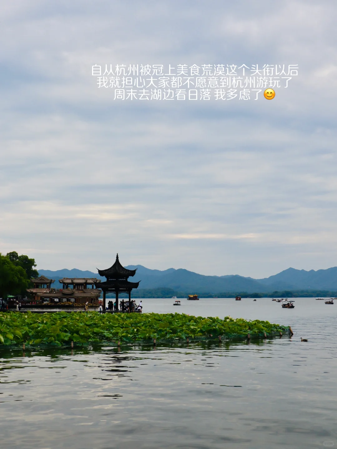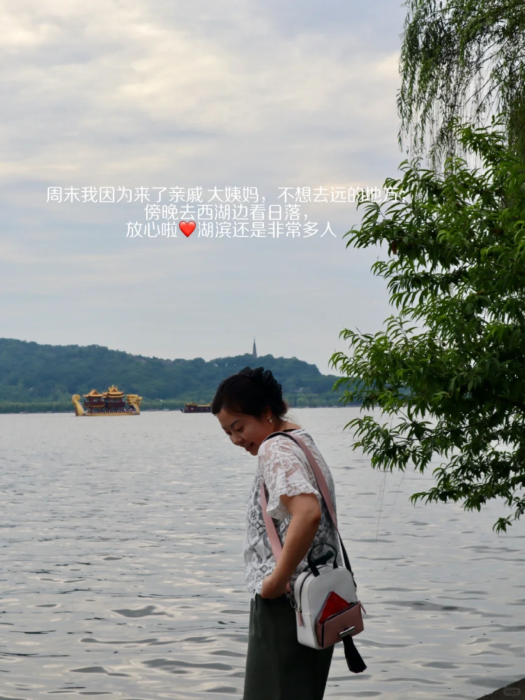 周末我因为来了亲戚 大姨妈,不想去远的地方;傍晚去西湖边看日落,放心啦❤️湖滨还是非常多人 [满月R]