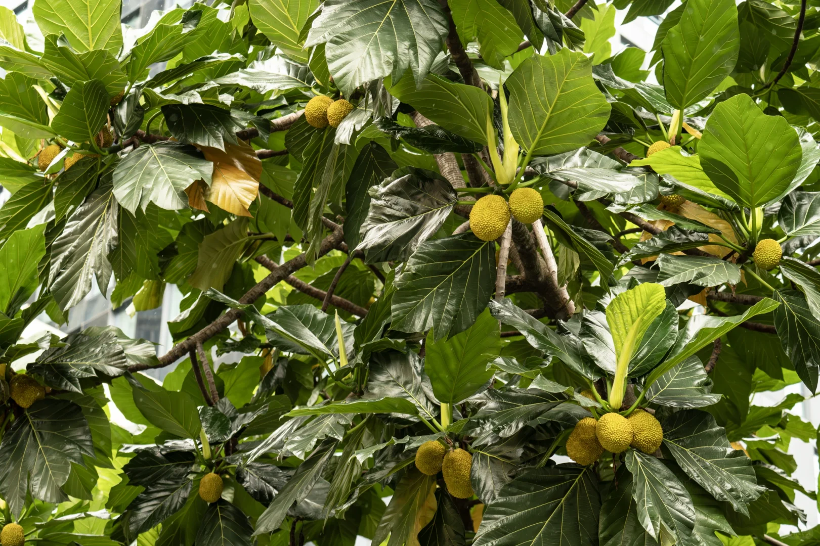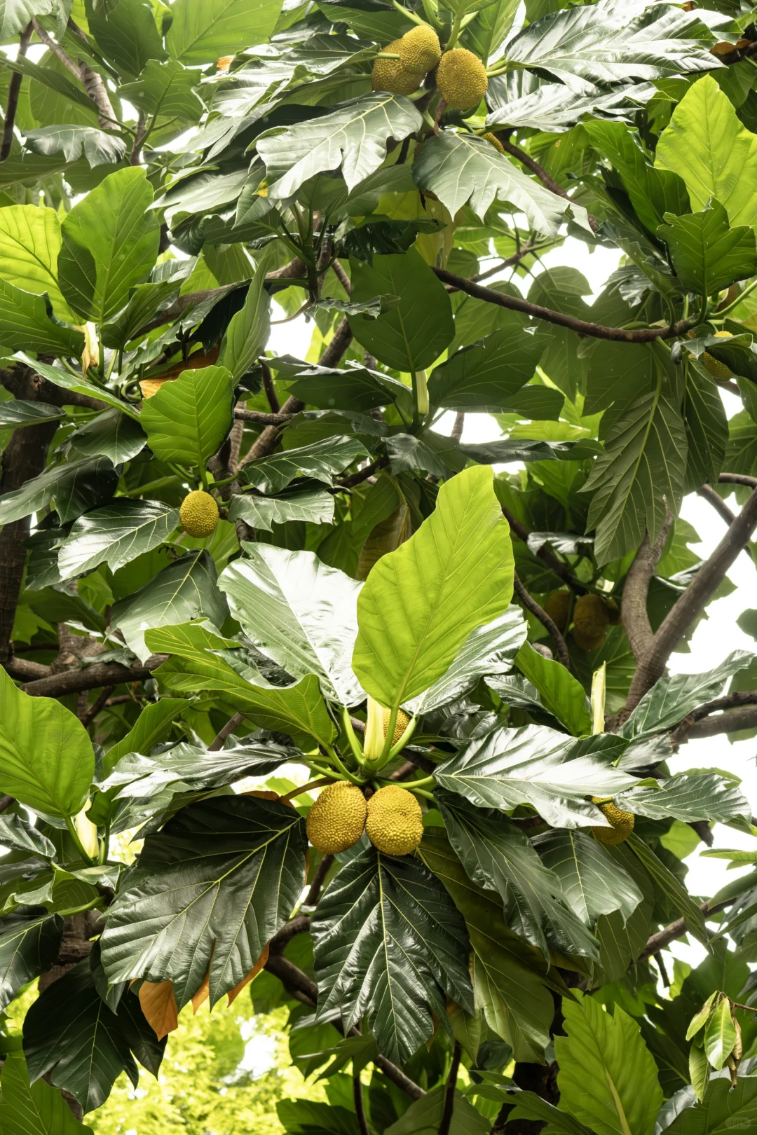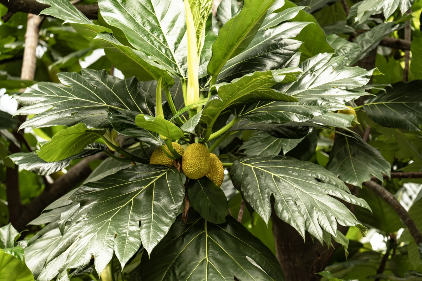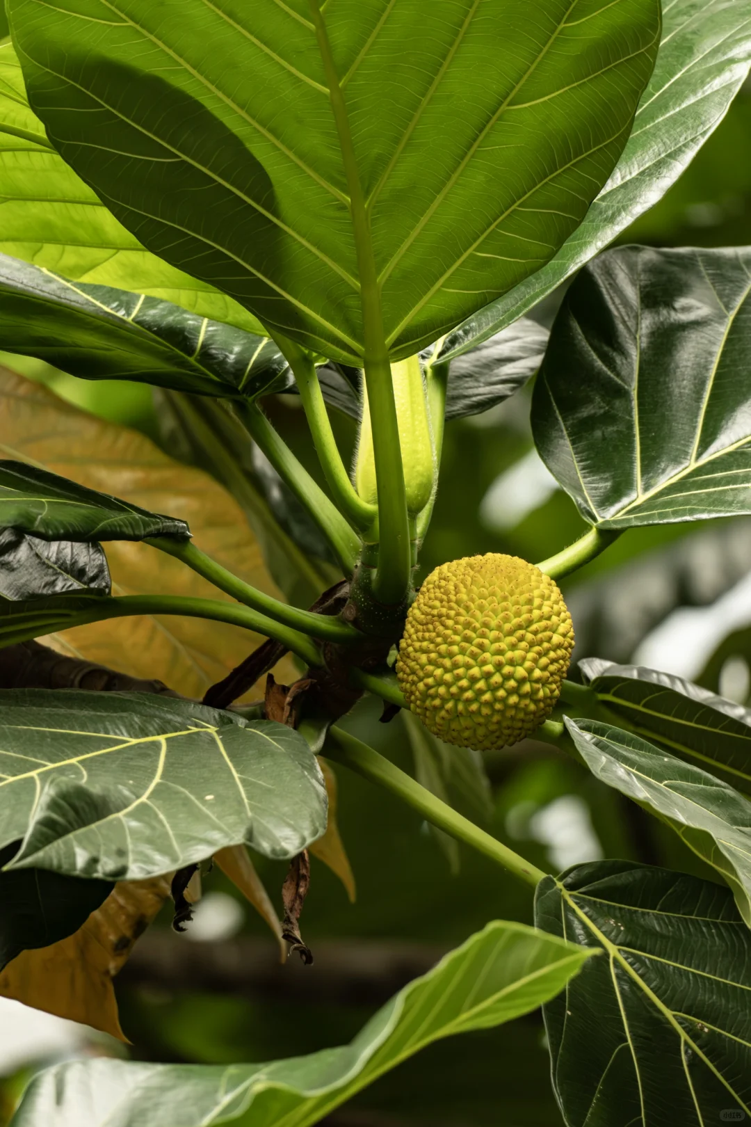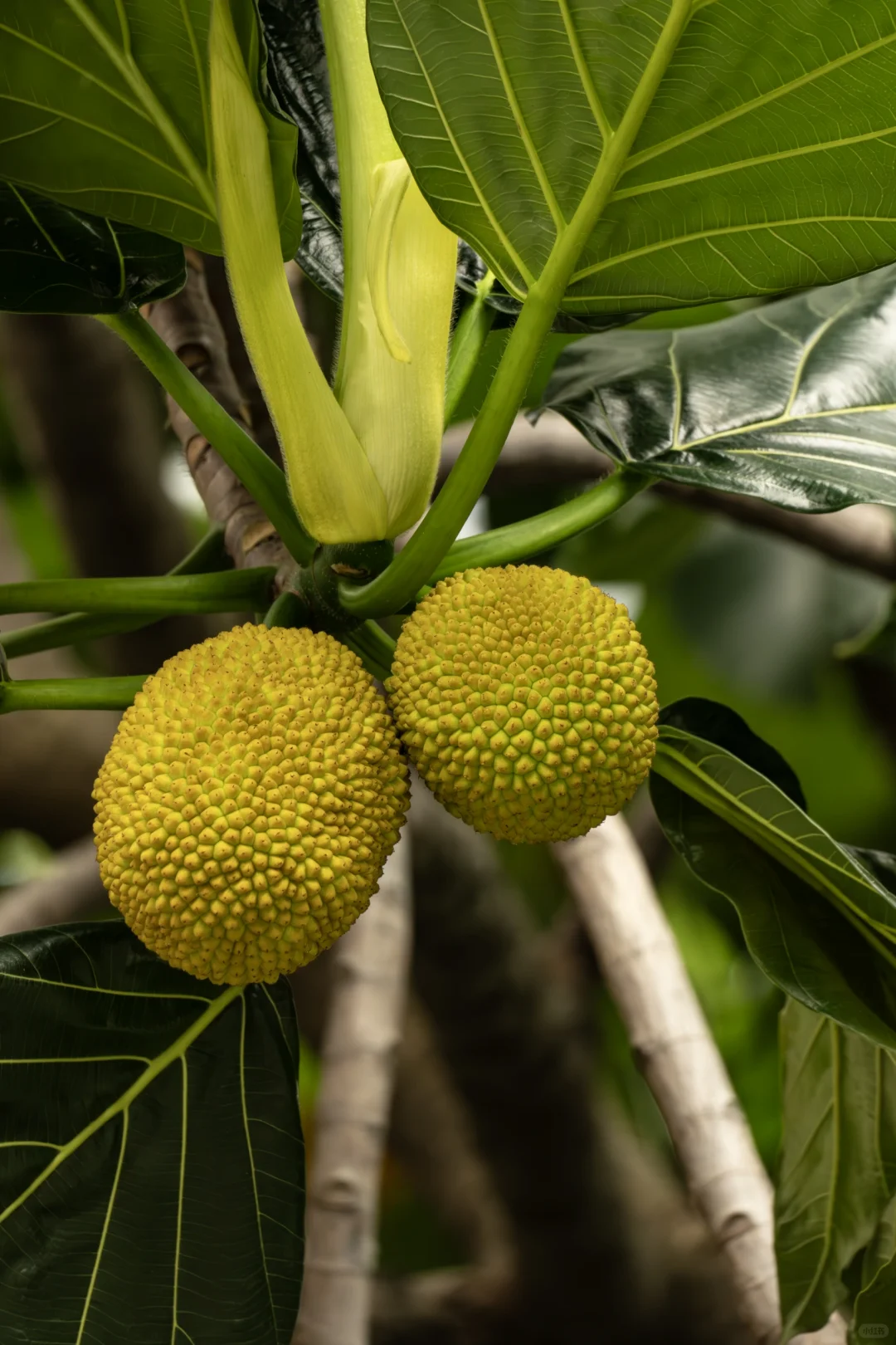 之前记录的面包树 已经开始挂满了 一颗颗黄澄澄的果实 路人路过总会惊叹 “好多波罗蜜呀” 打住,这真的不是波罗蜜 具体可以看 植物笔记384面包树的介绍哦