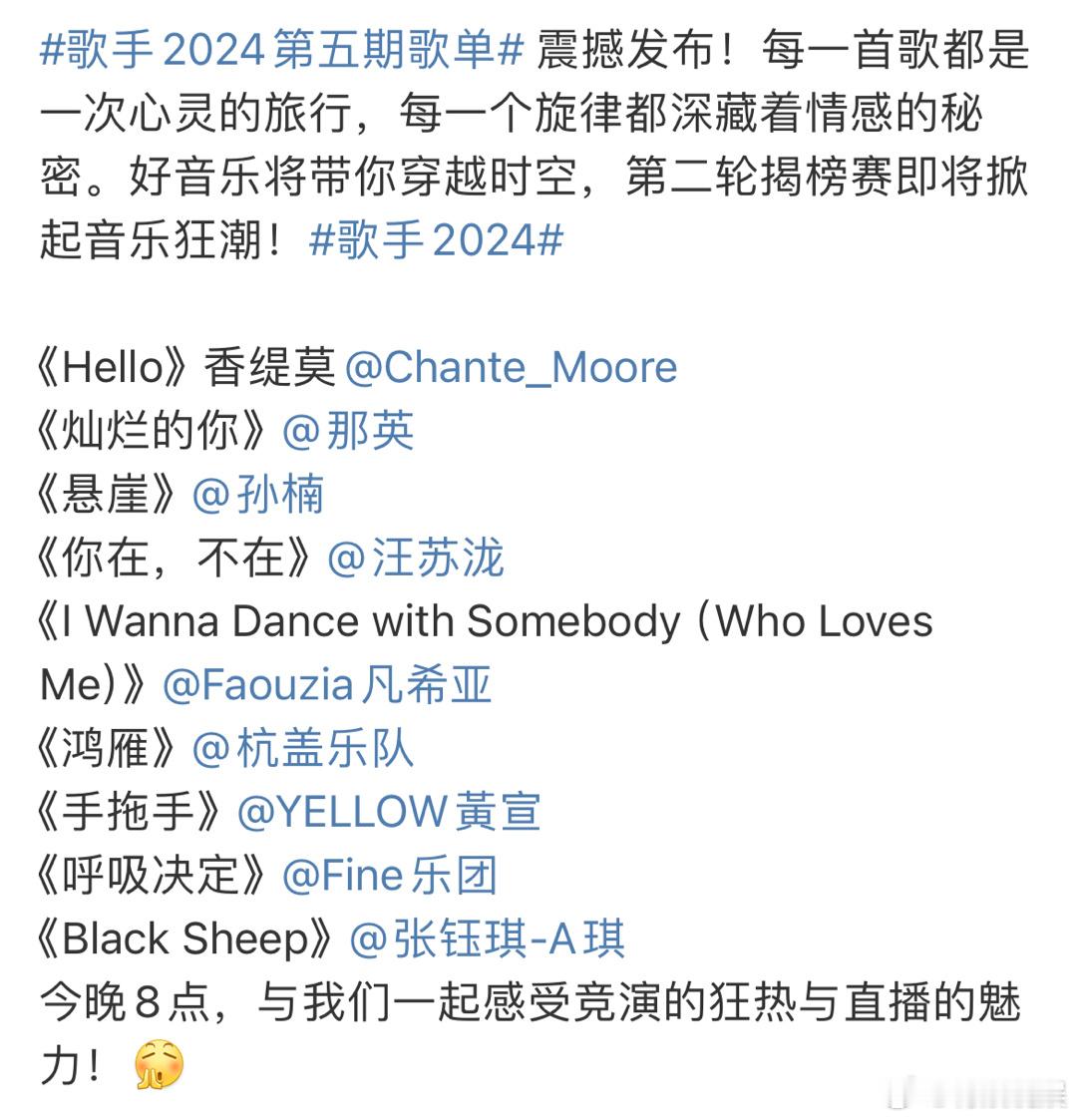 #汪苏泷要预定我的眼泪了# 歌手2024第五期刚刚发布歌单,汪苏泷要唱郭采洁的《你在,不在》,这是要提前预定我的眼泪了吗!