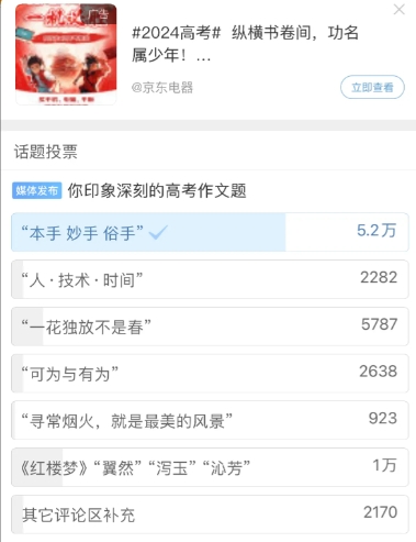 6月7日中午,又有很多人这么感慨!可是,大家忘记了最近几年让人无从下笔的“本手快手妙手”吗?忘记了“红楼梦”吗?2024年全国高考,重庆高考作文,今年简直是太友好,太好写,绝对不为难农村考生,不为难家境一般的考生,不为难没有丰富多彩或者刻骨铭心故事的考生……今年的高考作文,才是真的不难,但是又能非常合理区分出考生的思维能力和写作能力以及情怀、境界,绝对是最近十年最好最合理的高考作文题目。