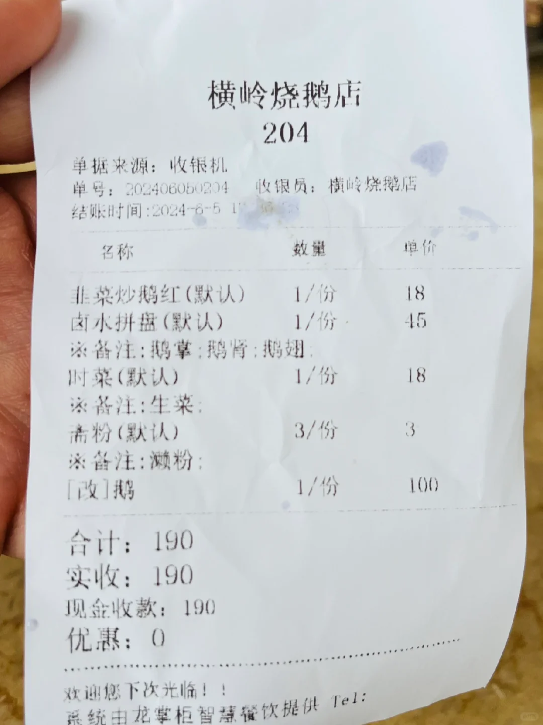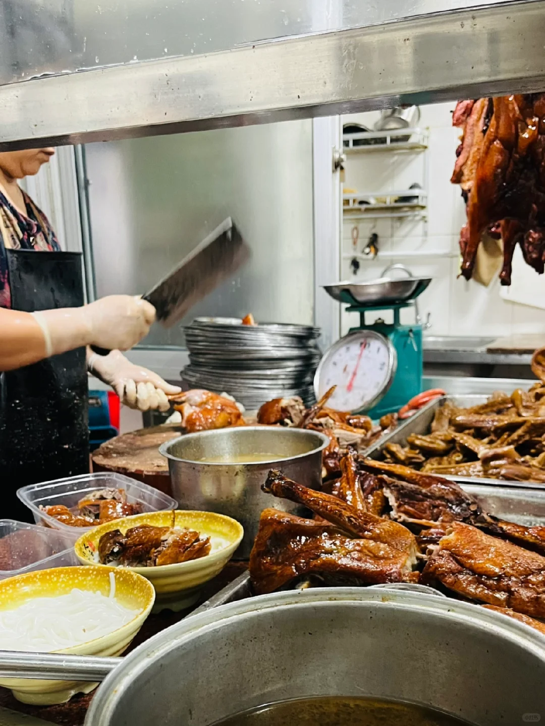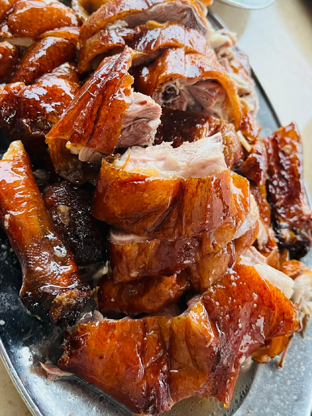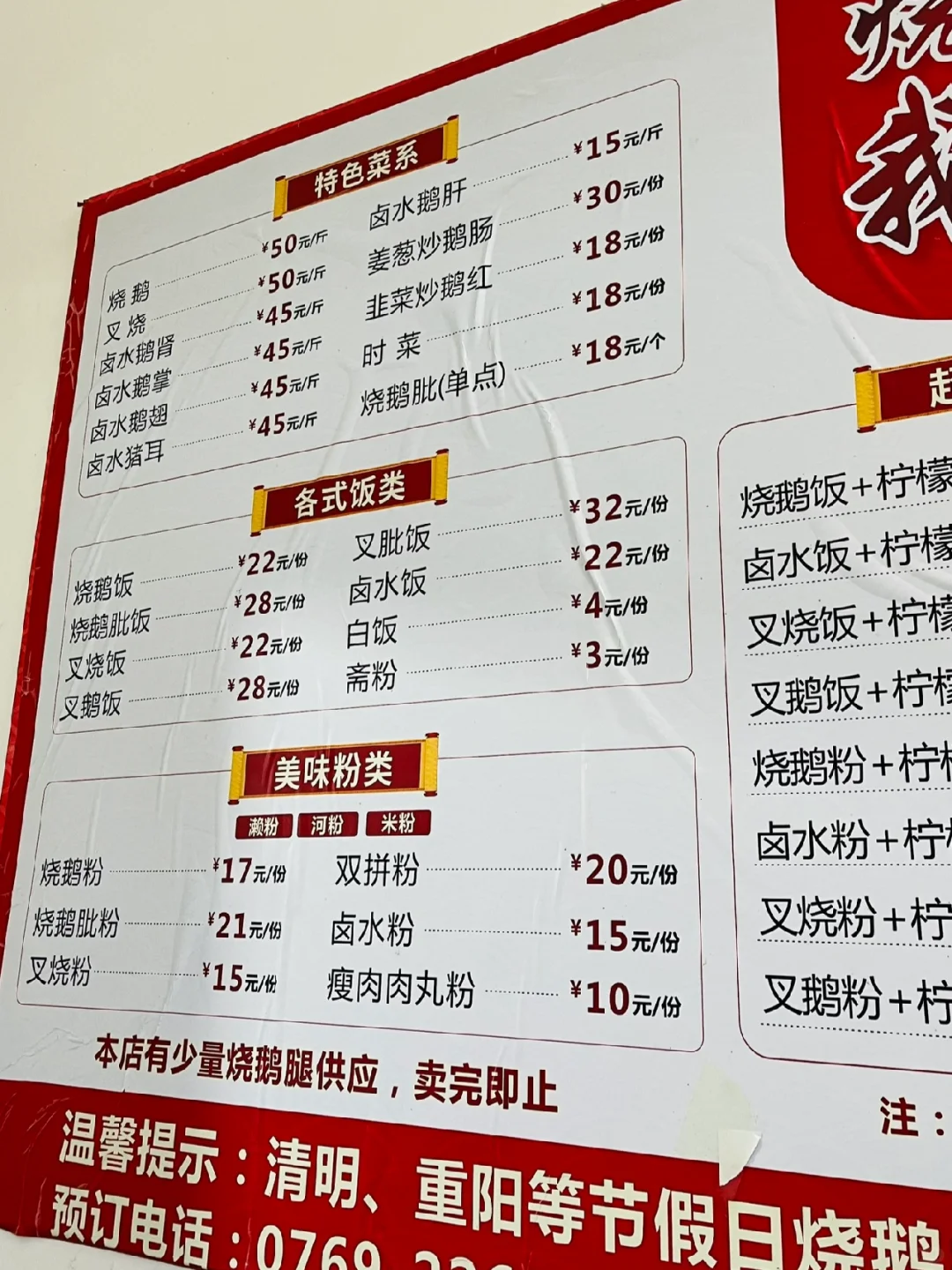 横岭烧鹅是一间在村里非常不起眼的小店,但味道和性价比都非常不错,一斤烧鹅45,我们买了2斤就已经是半只鹅,烧鹅香而不肥。这里的濑粉是很值得推荐,汤鲜甜,粉爽滑,个人认为比烧鹅更出彩。