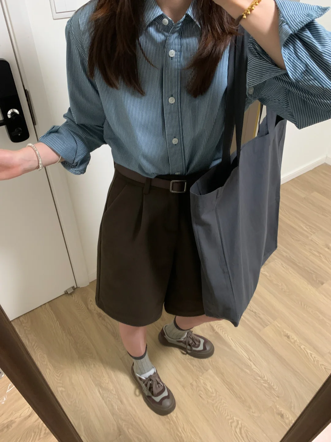 慵懒韩系通勤蓝衬衫马甲