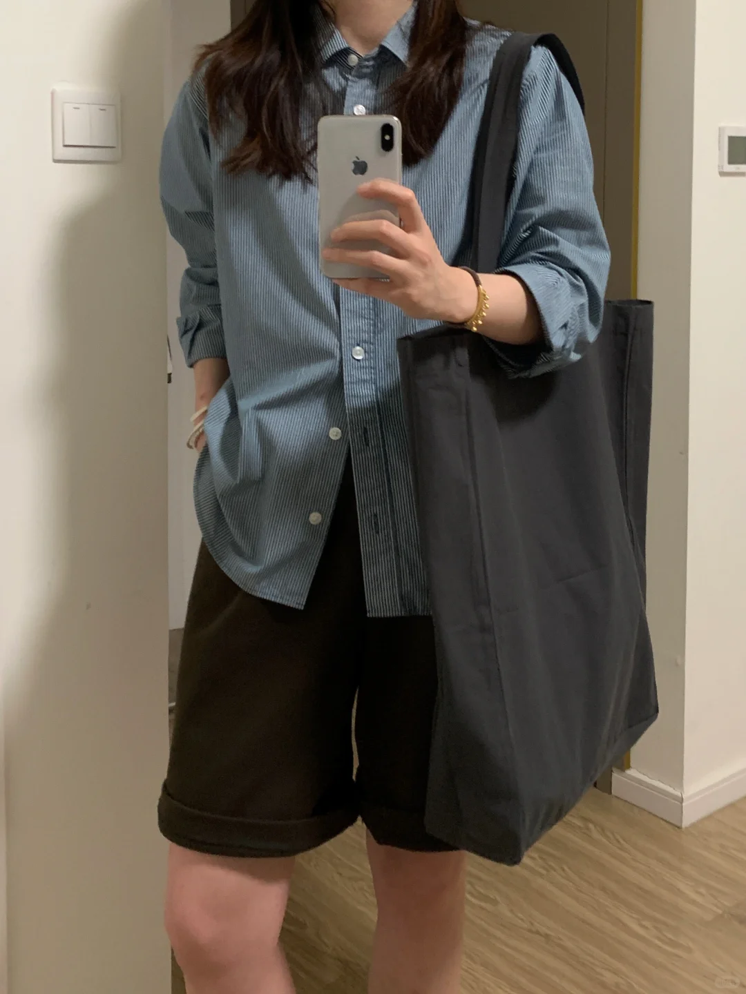 muji通勤蓝衬衫