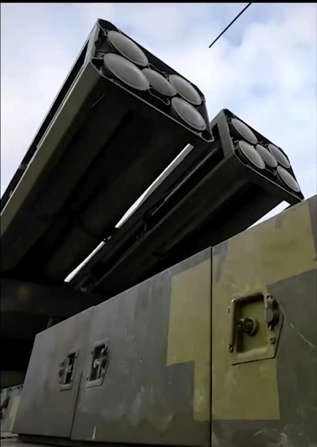 PHL-191远程箱式火箭炮(远箱火),300毫米模块中间的筒子,比周边四个发射筒的直径小一些。实际上中间那根是一个支撑管,一直以来误导了不少人,很多人以为中间那根也是发射管。 国产自用型的PHL-191箱式远程火箭炮的300毫米弹药,每个发射箱单元并不是5发火箭弹,而是4枚火箭弹。 PHL-191的发射箱单元与出口型的AR-3火箭炮的每箱5发火箭弹结构完全不同。 从作战角度看,由于普遍采用了精确制导弹药,不再强调火力密度,300毫米箱式单元的4发或5发没有太多区别,并不是装的越多战斗力越大。而且4发单元降低了车辆重心,有利于快速更换弹种。