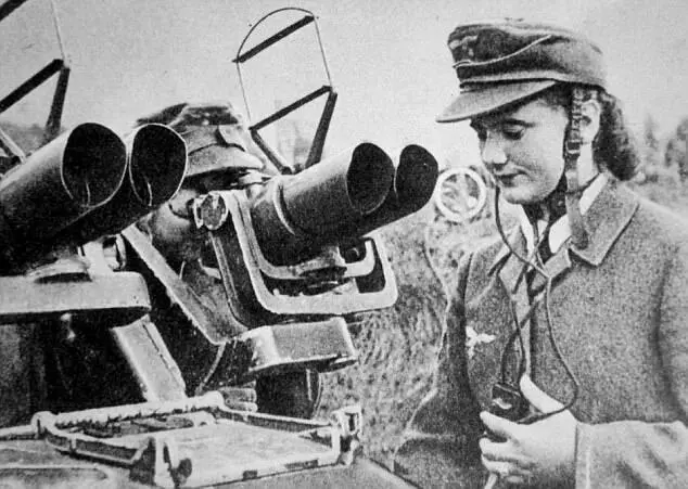 图7: 一位德国少女正在帮忙勘查敌情。在1944年,德国少女联盟的成员们看到了战争非常不同的一面。作为德国孤注一掷的最后一搏,许多少女受命布置地雷、成为狙击手,甚至操作铁拳反坦克武器