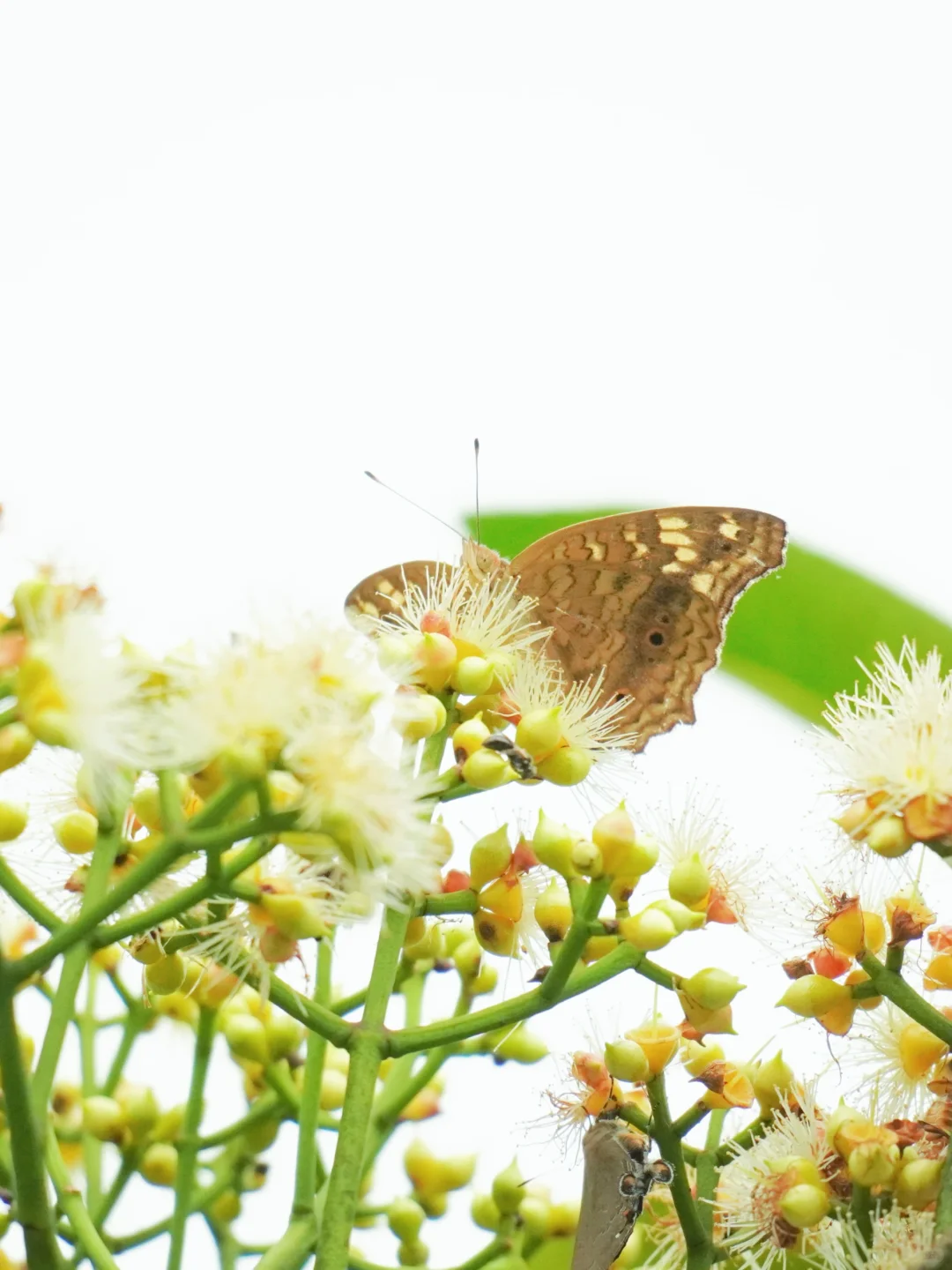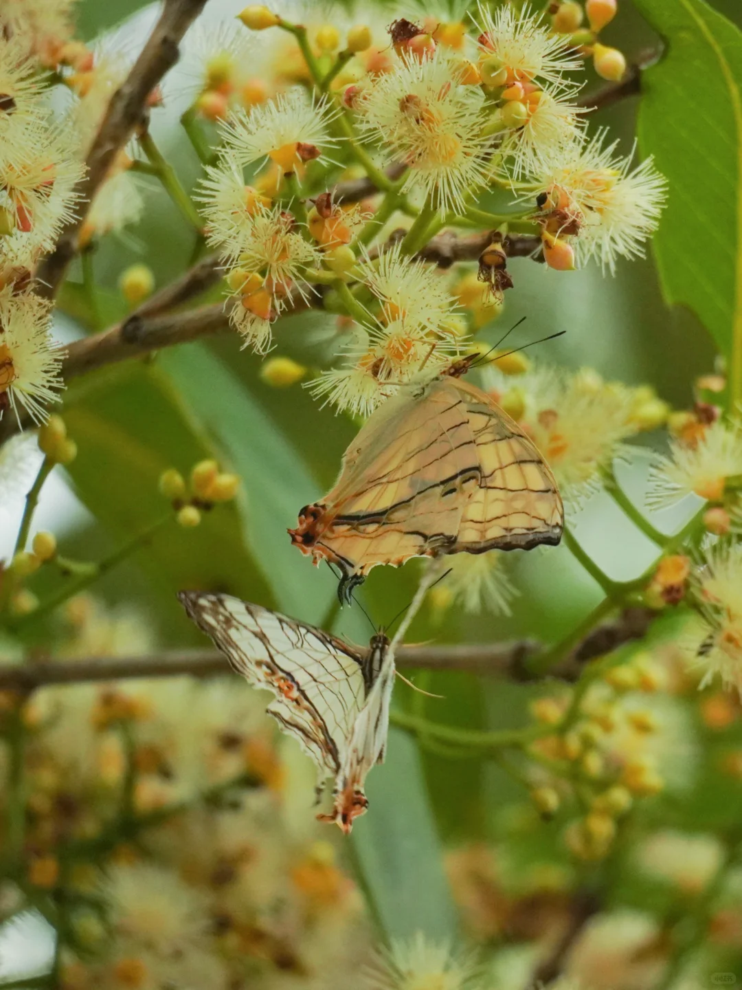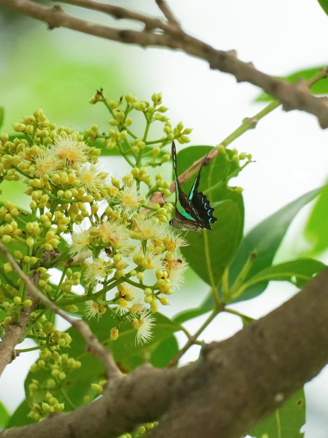 但树上热烈开放的花朵却让人不舍得轻易离去,因为它举办的盛宴实在是太热闹了。腥臭的小白花吸引了很多前来享用美餐的虫子,青凤蝶、蛇眼蛱蝶、网丝蛱蝶、粉蝶、豹尺蛾等等都纷纷前来,参加这一年一度的美食盛宴。