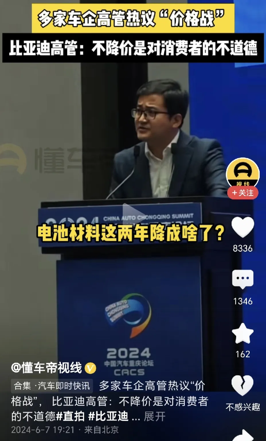一群汽车厂打架,最后电池厂受了伤。比亚迪:你们不降价是对消费者的不道德其他车厂:你不要装清高,我们原材料采购成本高!比亚迪:原材料采购成本高?这两年电池原材料降价了!其他车厂:是吗?我找电池厂去!