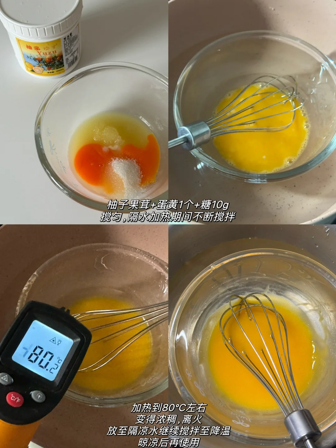 柚子果茸20g+可生食蛋黄1个+细砂糖10g