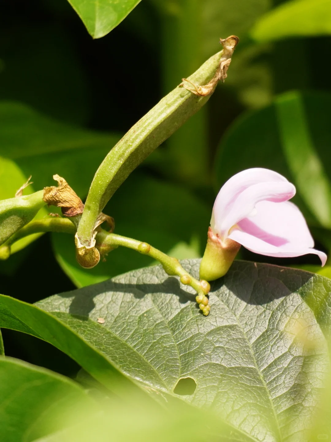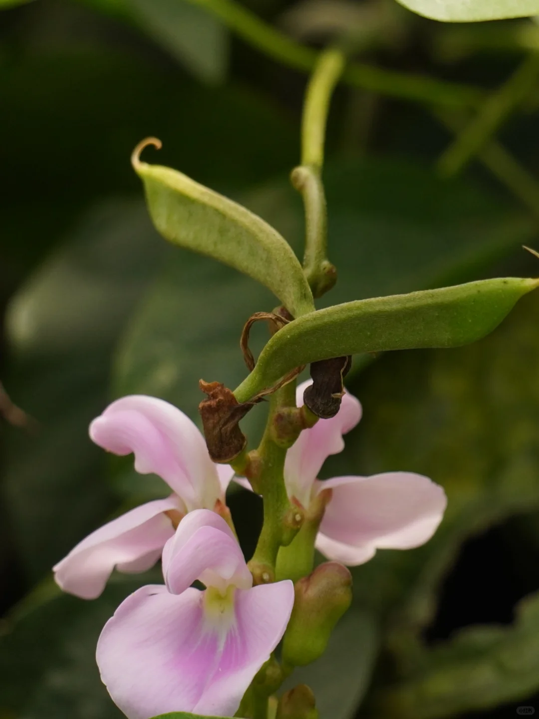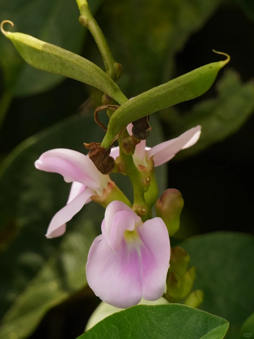 此时,它的花期已经到了末尾,有的已经结出了小小的刀状的豆荚,它的果荚胖且短,而且豆荚和种子有毒。