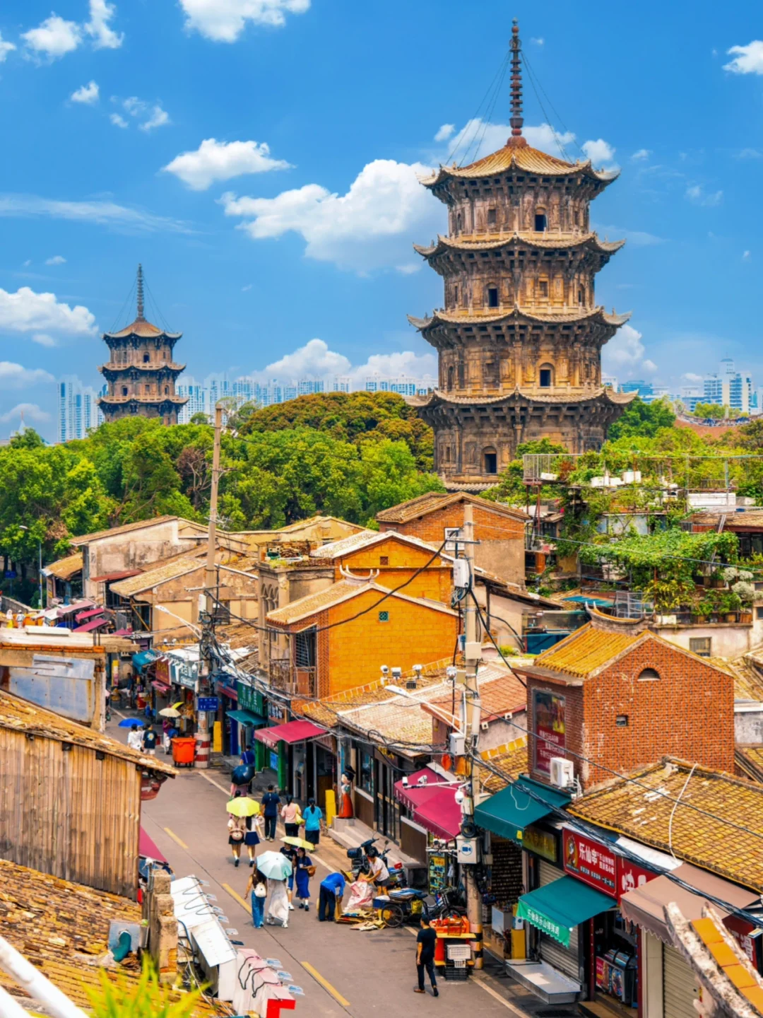 ➊开元寺:福建最大规模的佛教建筑,两侧各有东西二塔