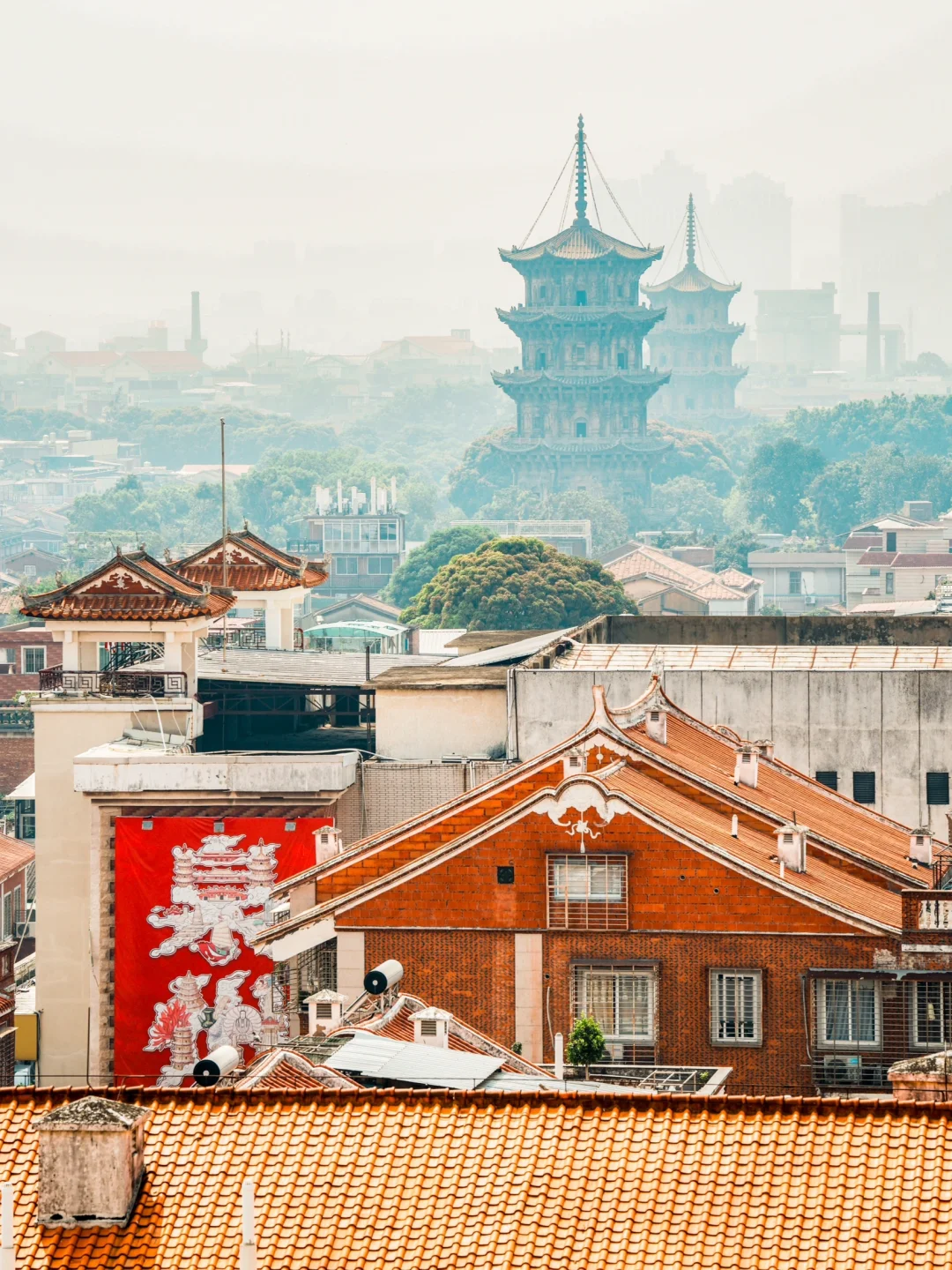 🍃最火的“泉州”大字海报和双塔合影的机位在对面酒店的天台,有的时候铁门会锁上,看运气