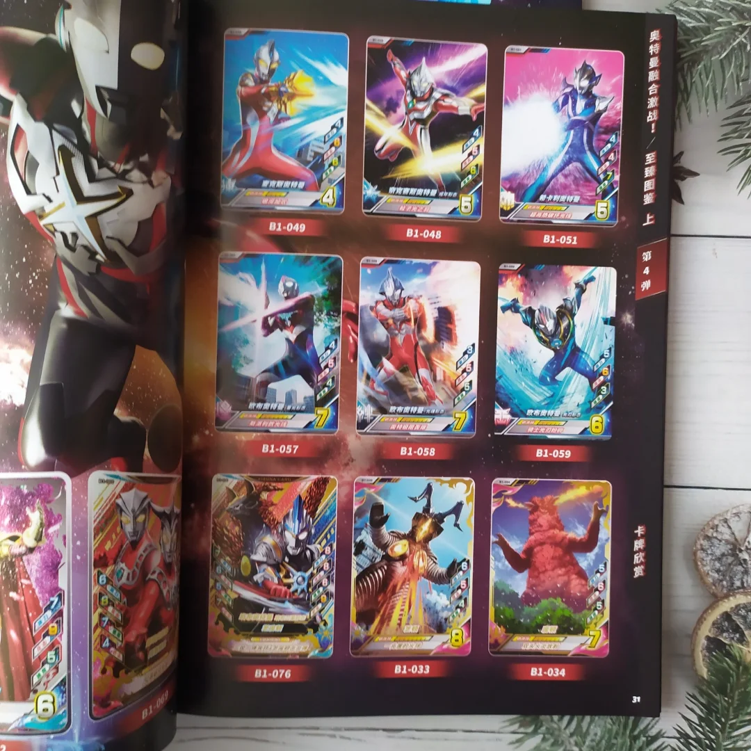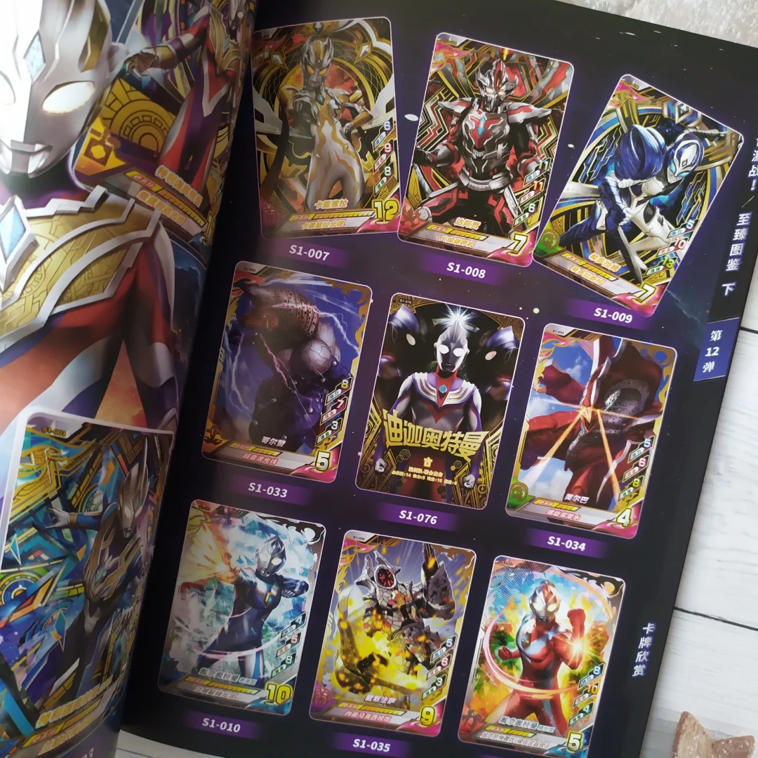虽然奥特曼通过了电视、电影和漫画等多种媒体,已经都有广泛的影响力,大小朋友通过这些渠道对奥特曼产生兴趣。但是这些媒介毕竟只是媒介,总是要隔着一些什么,通过一些卡牌手办模型。让小朋友们犹如亲身经历场景一般。具有一种极强的代入感,参与感。特别是小巧玲珑的卡牌游戏。它的方便性,快捷性,易操作性,更是其他游戏方式所不具备的。这套《奥特曼融合激战至尊图鉴》一下子就奉献了1000多张的奥特曼卡牌。并且他们是可以游戏联动的。你看封面上高斯奥特曼的月形神态,麦克斯奥特曼,梦比优斯奥特曼,艾克斯奥特曼,维克利特奥特曼,银河奥特曼。还有各种奇形怪状的怪兽,芝顿,巴尔坦星人,哥莫拉,基里艾洛德。这里面的东西我估计即使你是一个奥特曼的达人,有好多也未必就能认识得全呢。闪耀登场的第1弹卡牌大集合。仅仅是给你奉献了一个序幕而已。接着的第2弹又有什么?第3弹会是什么?第4弹又是有什么人物出场啊?