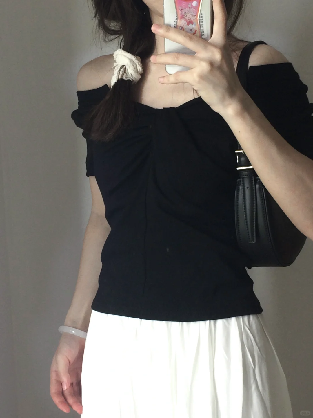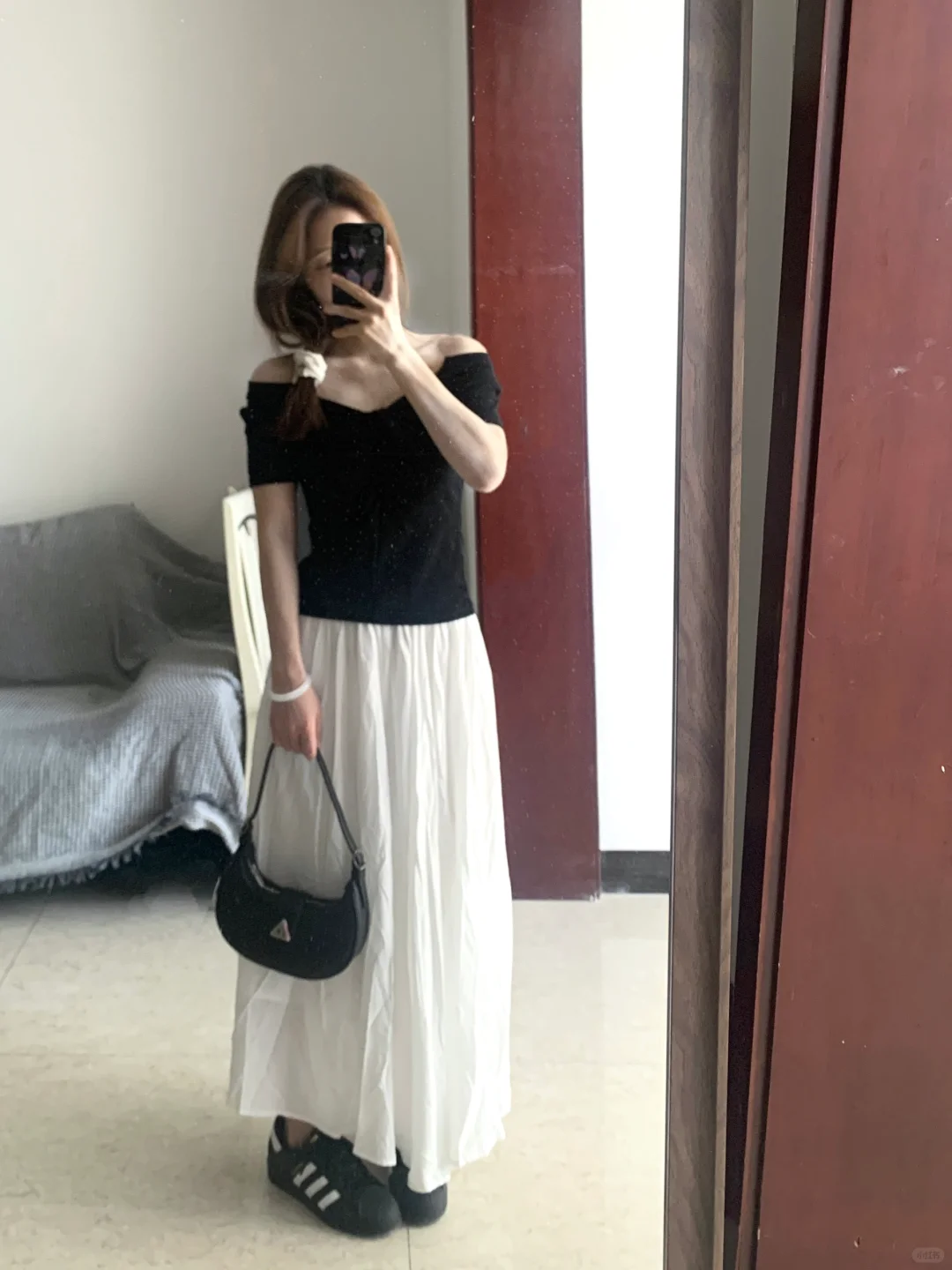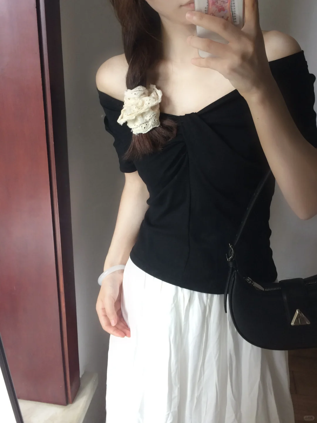这件上衣太赞了!可以两穿,我也是喜欢一字肩,搭百褶裙超温柔~简约耐看,满满高级感~推荐