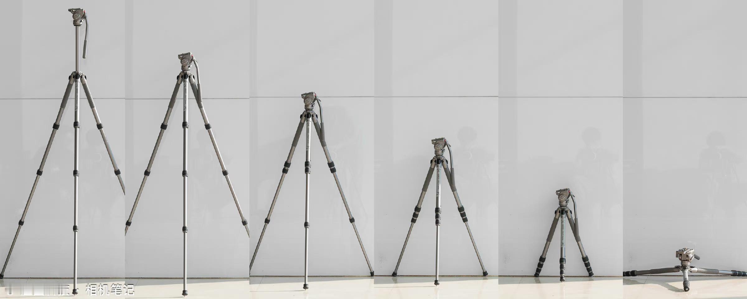 - 铝合金材质。4节脚管,最粗管径23.5mm。脚架自重仅1.2Kg,标称承重10Kg。