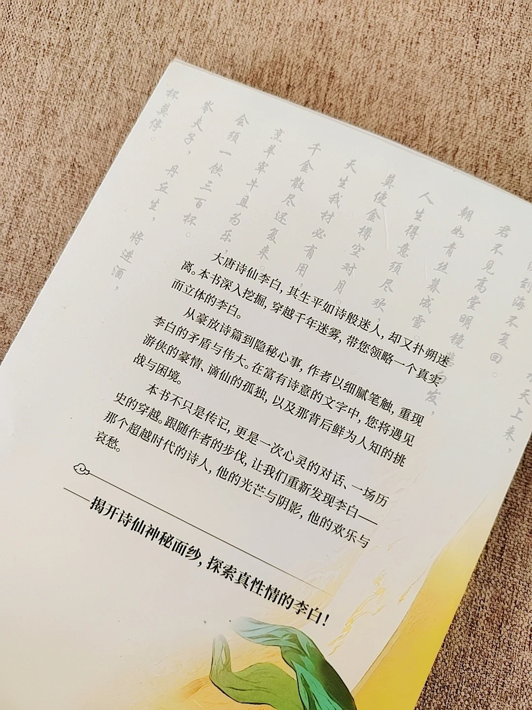 这本书真的太太太宝藏了,是我唯.一读过的,对李白描写蕞全.面的书!字字句句,细腻又深沉,帮我们揭开诗仙神秘面纱,探索真性情的李白!!