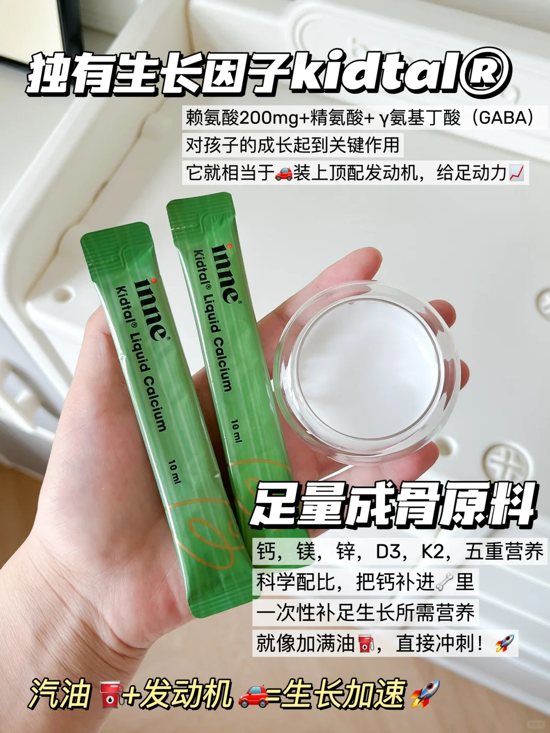 kidtal®里面的赖氨酸+精氨酸+ γ氨基丁酸(GABA)都是促生长的好东西,每天2条就能补充600mg钙和400mg赖氨酸,就算挑食娃也能把成长原料和动力补到位,让孩子像加足马力和汽油的赛车一路猛冲🏎
