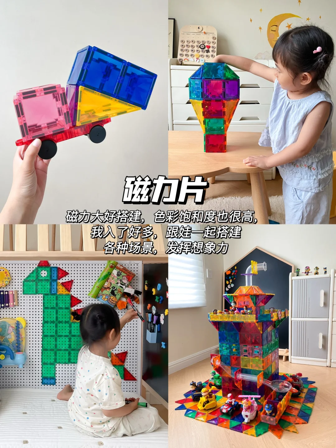 磁力大好搭建,色彩饱和度也很高,我入了好多,跟娃一起搭建各种场景,发挥想象力