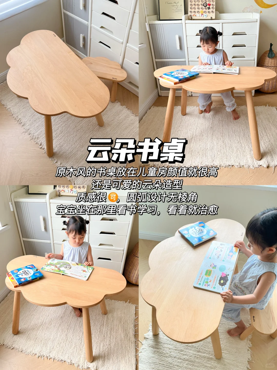 原木风的书桌放在儿童房颜值就很高,还是可爱的云朵造型,质感很🉑,圆弧设计无棱角,宝宝坐在那里看书学习,看着就治愈