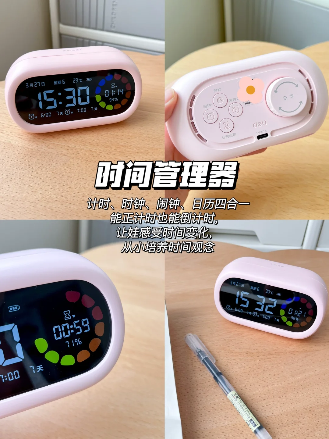 计时、时钟、闹钟、日历四合一,能正计时也能倒计时,让娃感受时间变化,从小培养时间观念