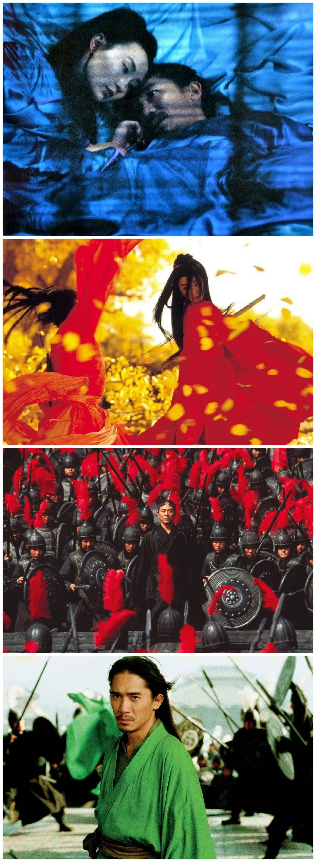 《英雄》用黑、红、蓝、绿、白讲述不同的人物和故事,各种颜色不仅层次分明,也充满着细微的差别。