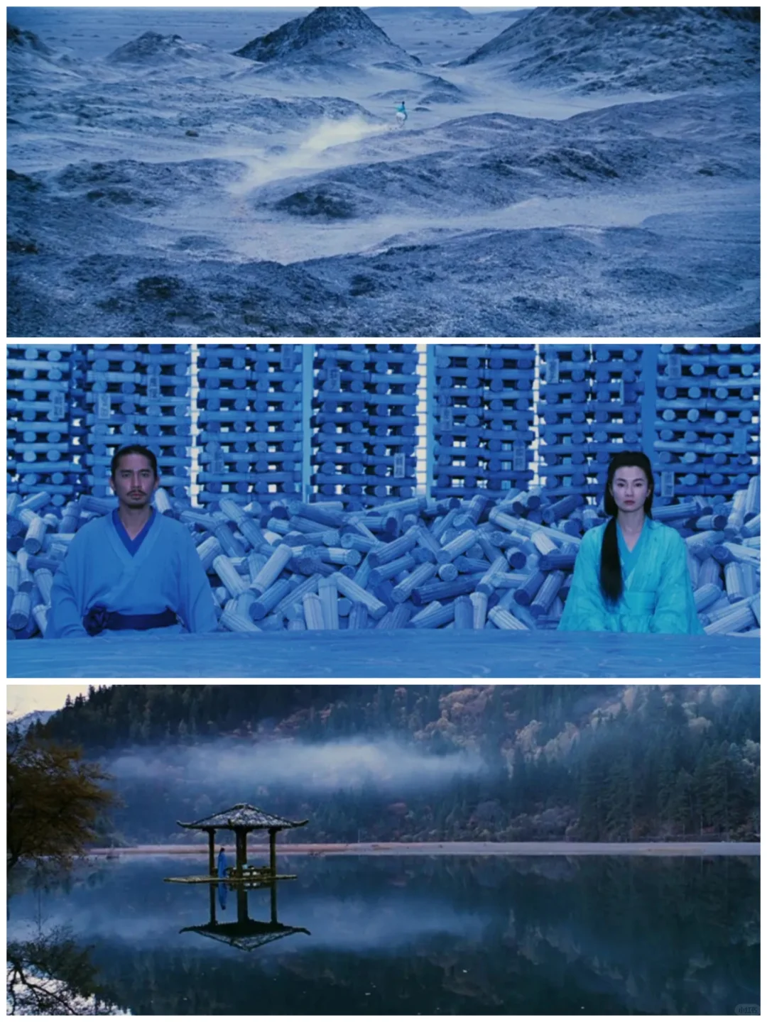 3,秦王所猜测的故事,主色调是蓝色,这很符合他处心积虑、充满猜忌的人物设定。