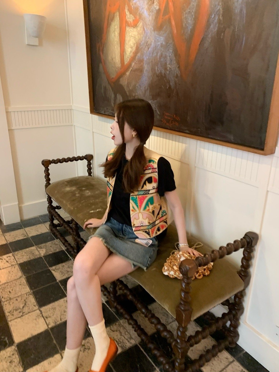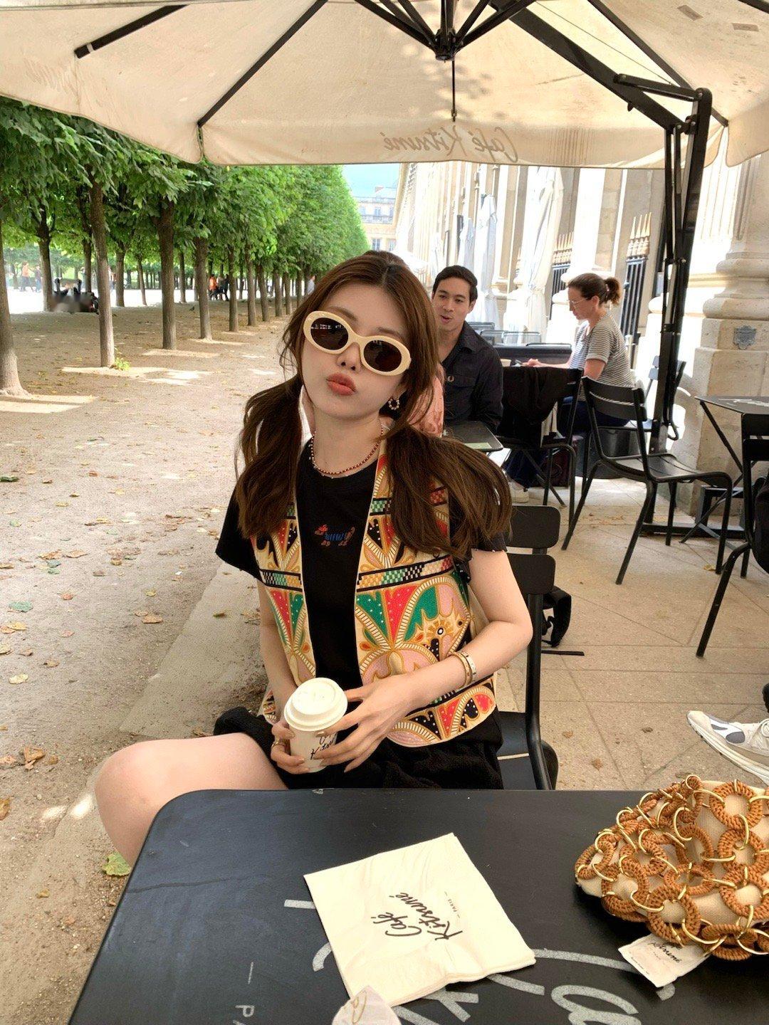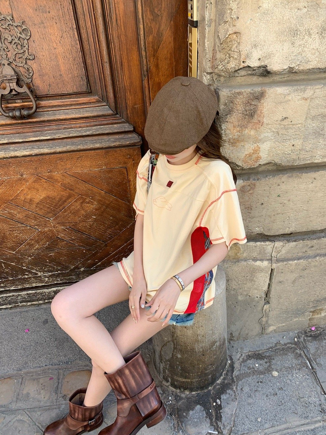想发这件腊肠修勾一件t都是手工的 她领圈和袖边都是手工钉珠的 五颜六色的珠珠小花