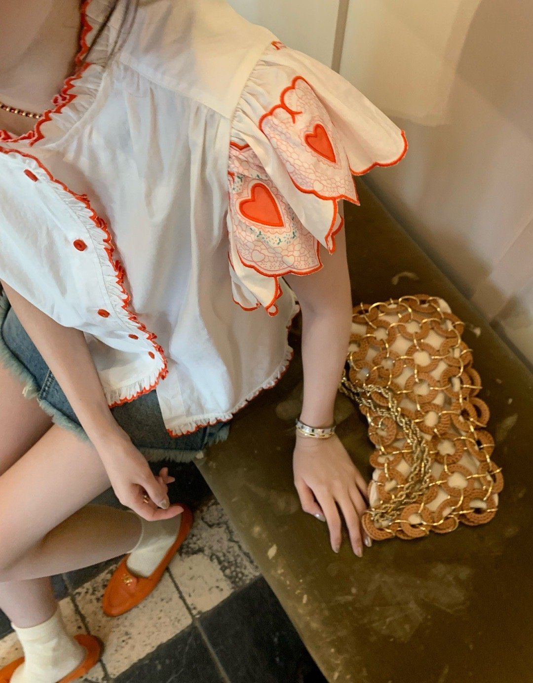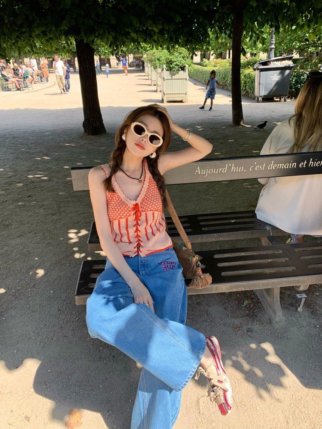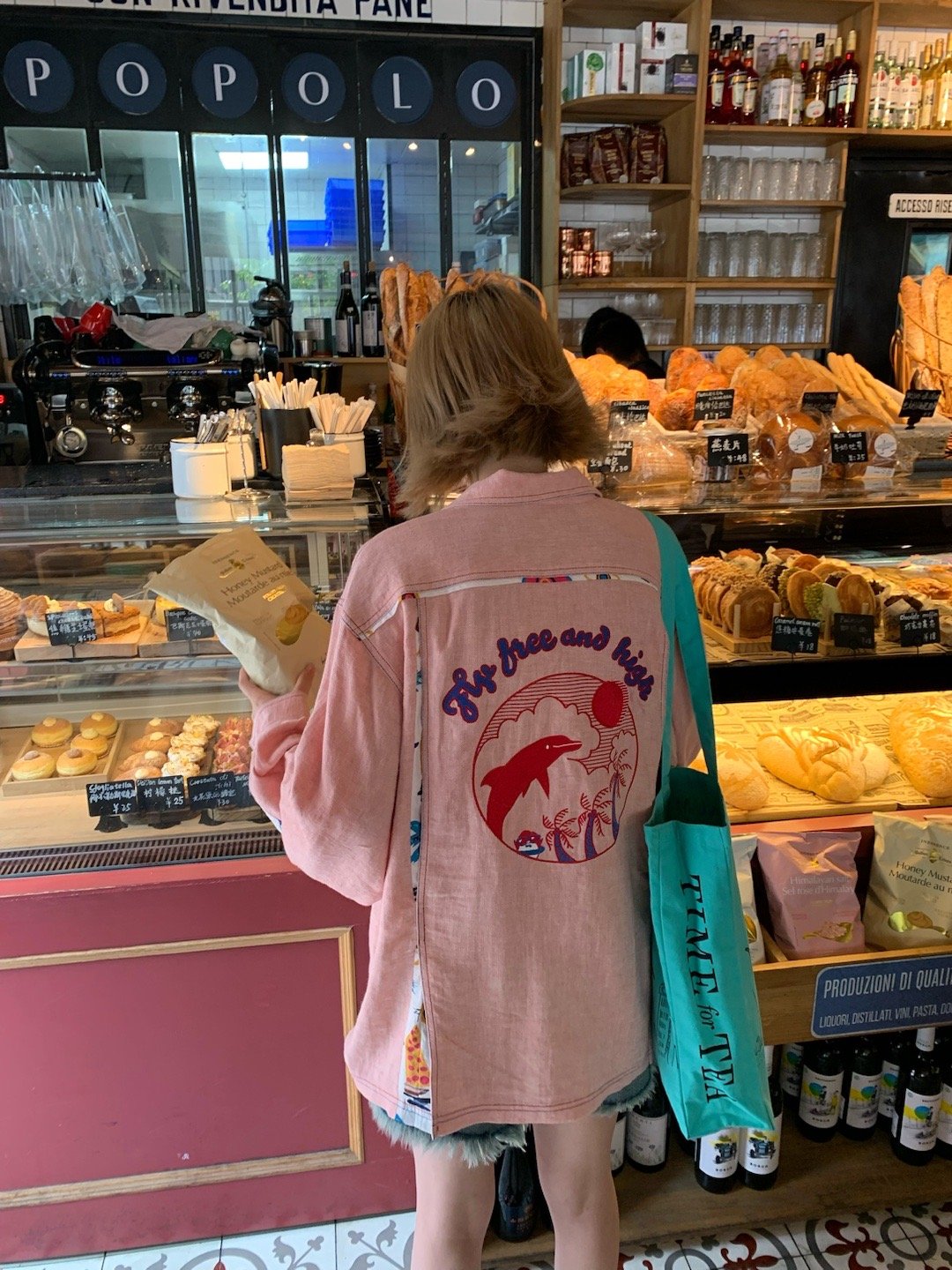 想发这件腊肠修勾一件t都是手工的 她领圈和袖边都是手工钉珠的 五颜六色的珠珠小花