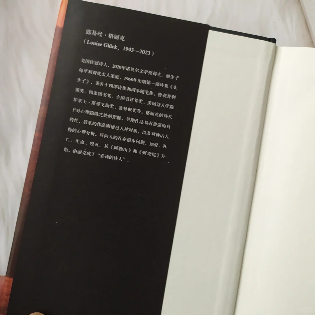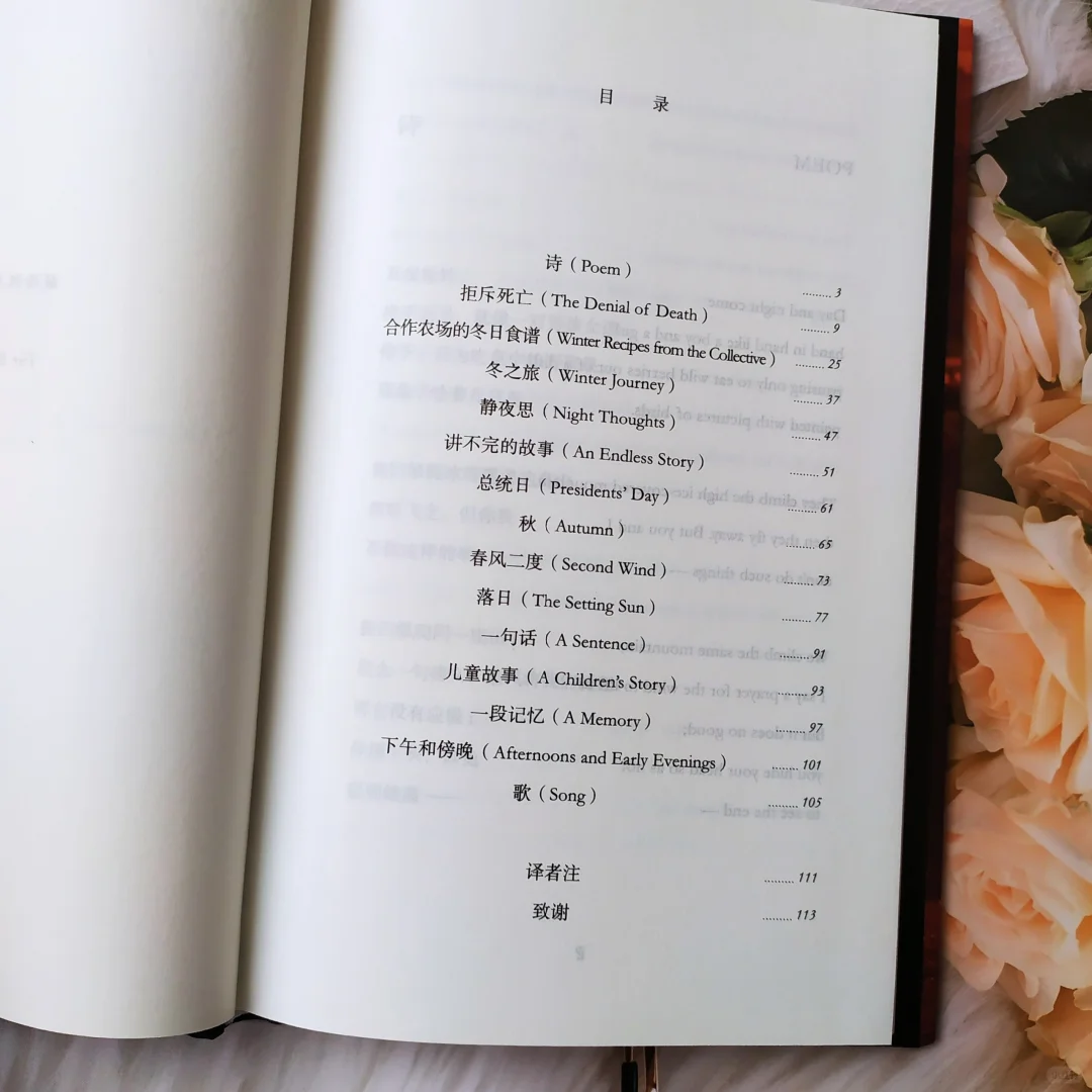 《合作农场的冬日食谱》冬天就好像老年一样。时间好像都变得缓慢了。但是正是这样的空域里,一切又有着丰盈的意义。这老头老太,我们有的是耐心。你我这样的人难以想象的那种耐心。这是一种生命的沉淀,存在就是意义。格丽克的诗歌经常探讨人类存在的问题,如生命、死亡、爱、失去、孤独、记忆和时间的流逝。
