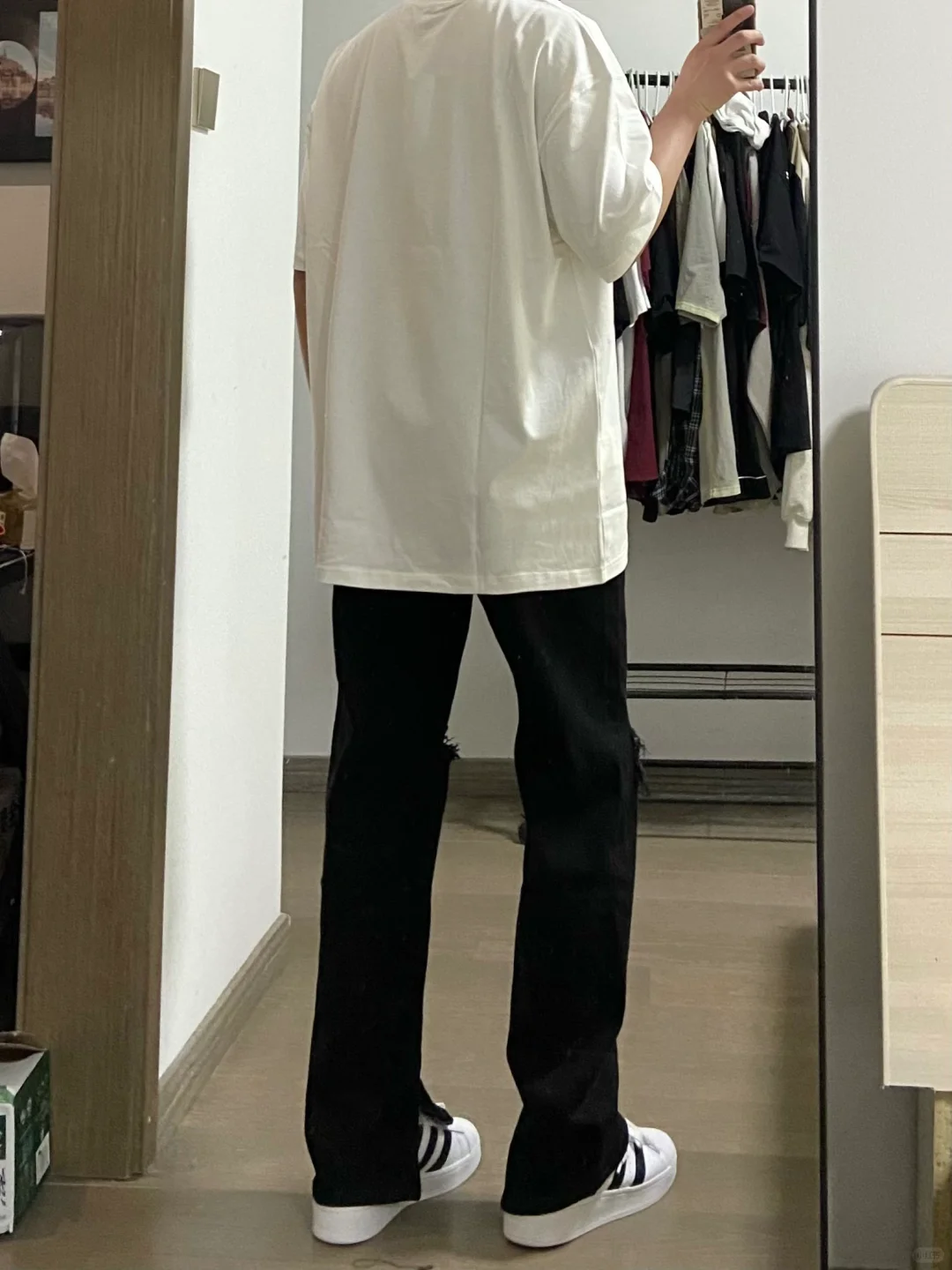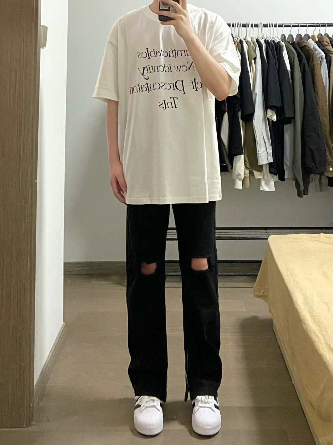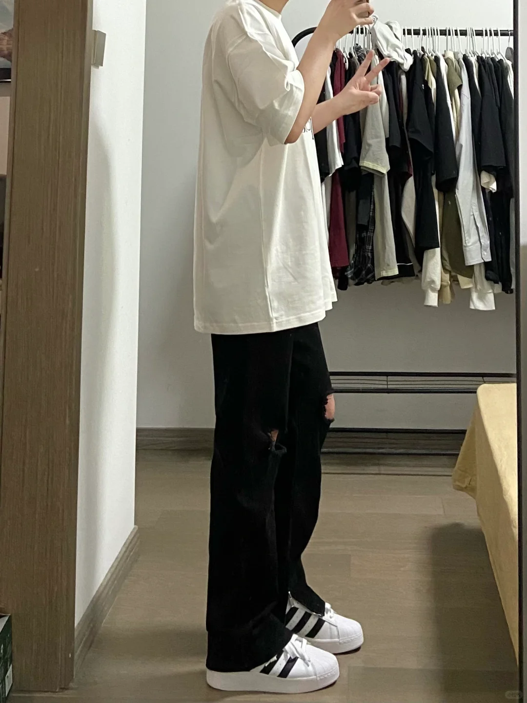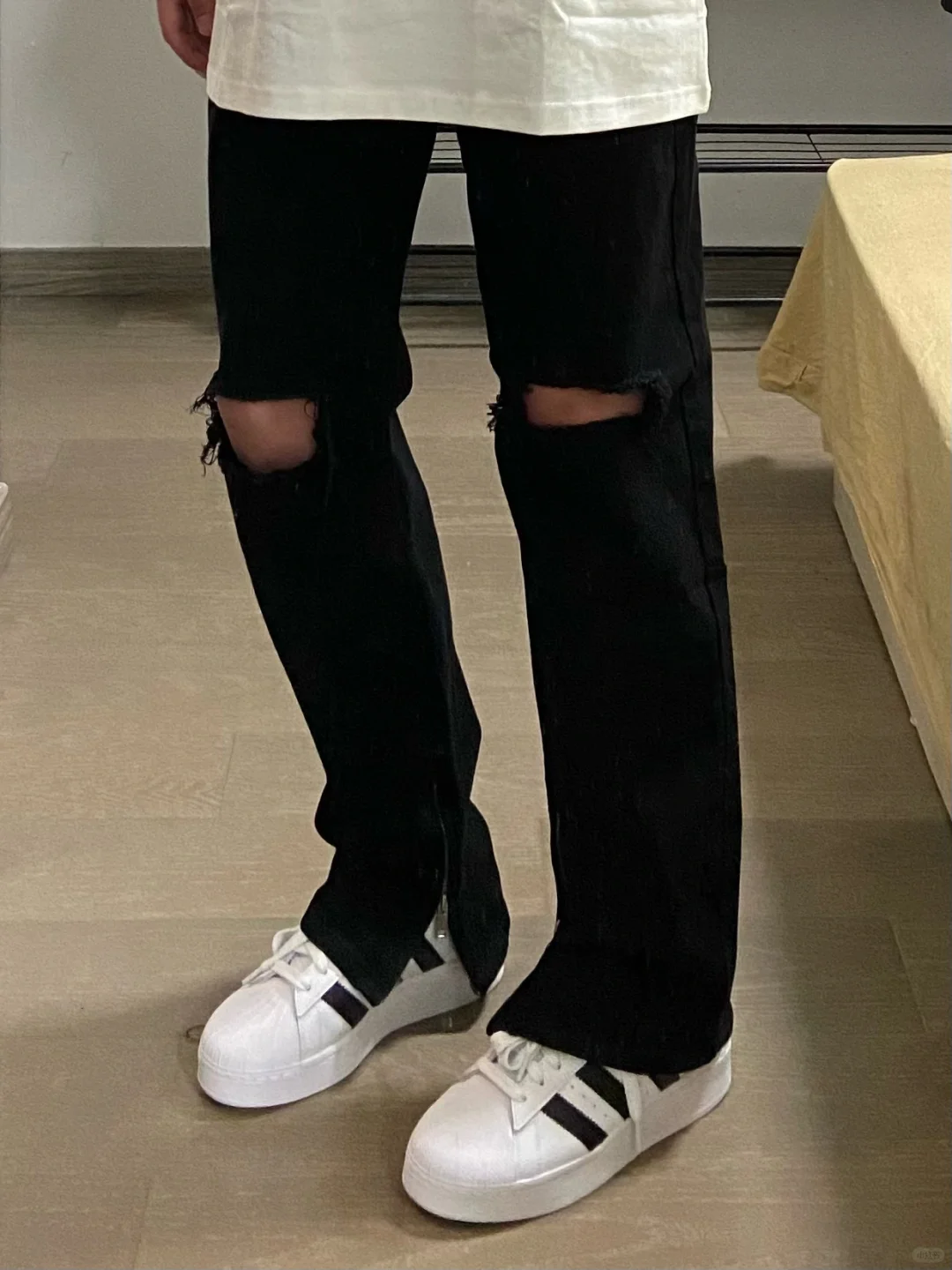 Ootd夏季穿搭|白色简单T恤➕黑色破洞牛仔裤!