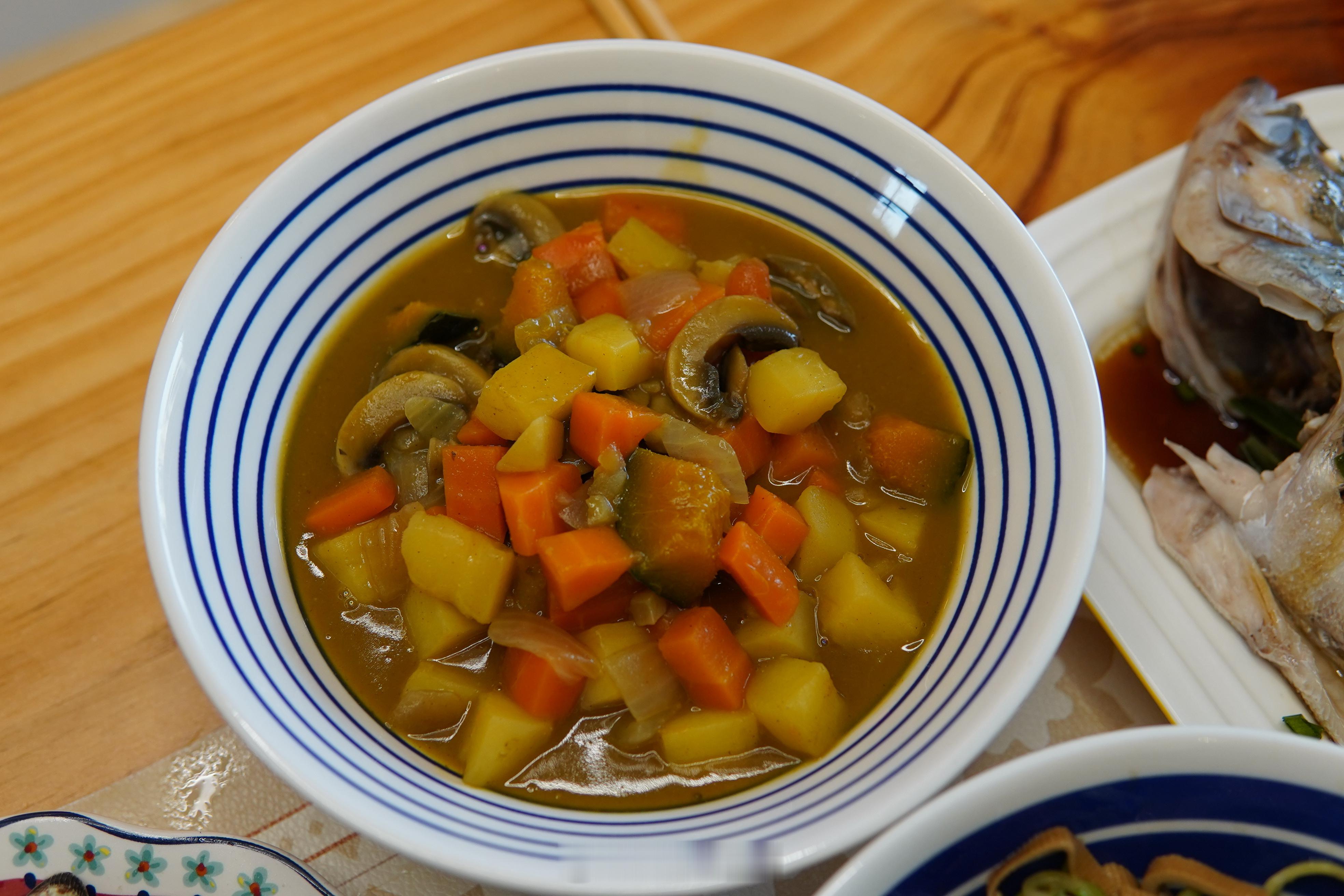 我的早午餐是一大碗蔬菜蘑菇豆皮汤、超大个土豆丝卷饼,用平底锅烤的外皮酥脆。半个麻