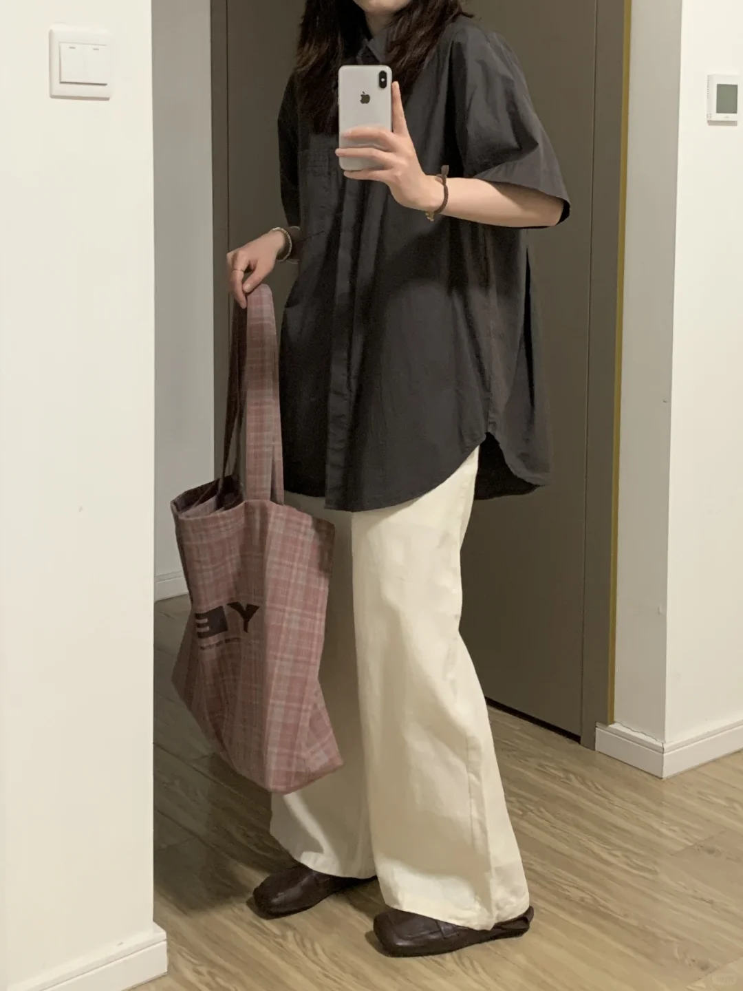 上班穿搭就选休闲慵懒灰衬衫,简约又有范儿