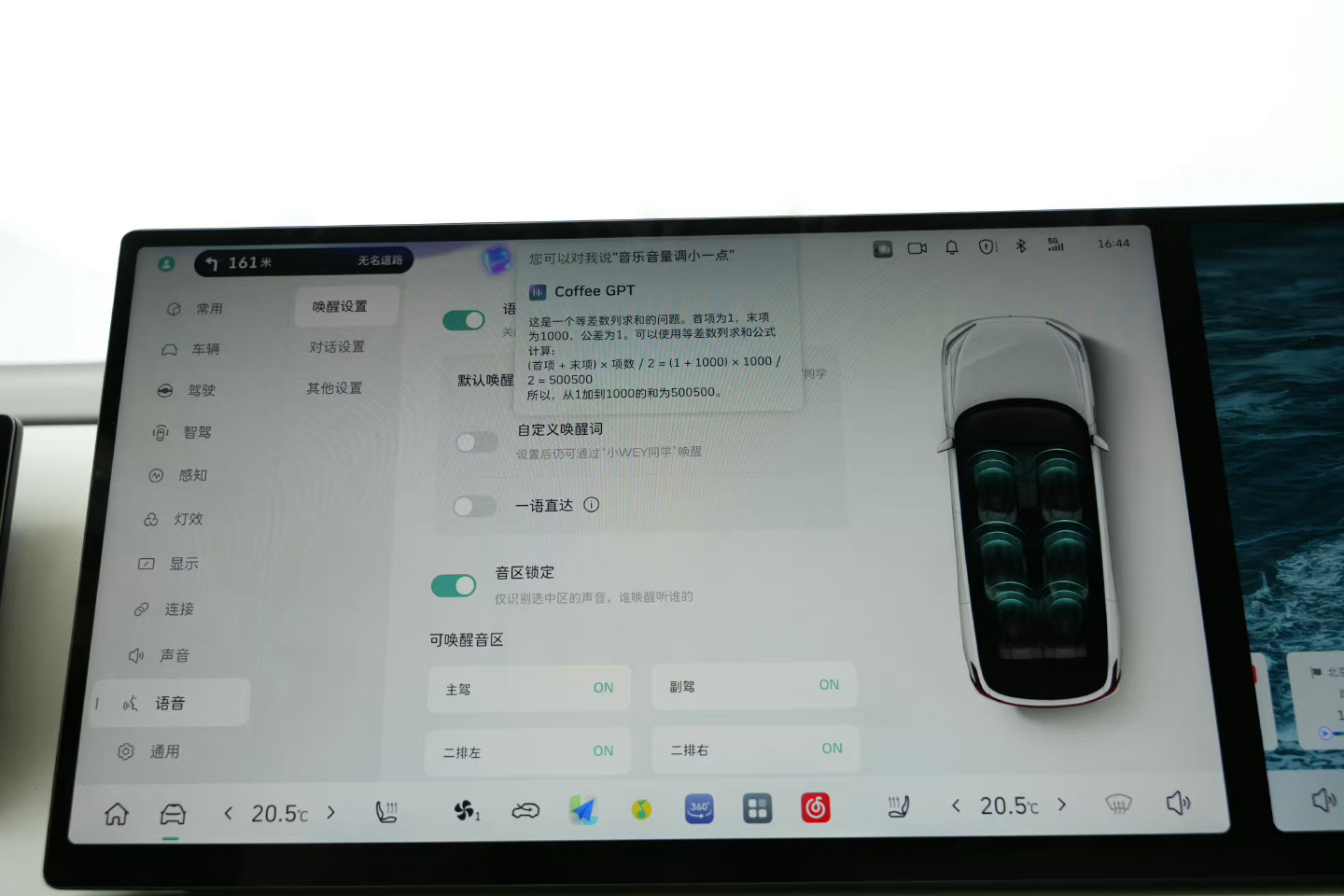 还有就是大模型也上车了,试了下Coffee GPT,还是挺聪明的。这次冰箱彩电大沙发外加智能座舱辅助驾驶全给配满了,就等上市时的价格。#魏牌蓝山智驾版#