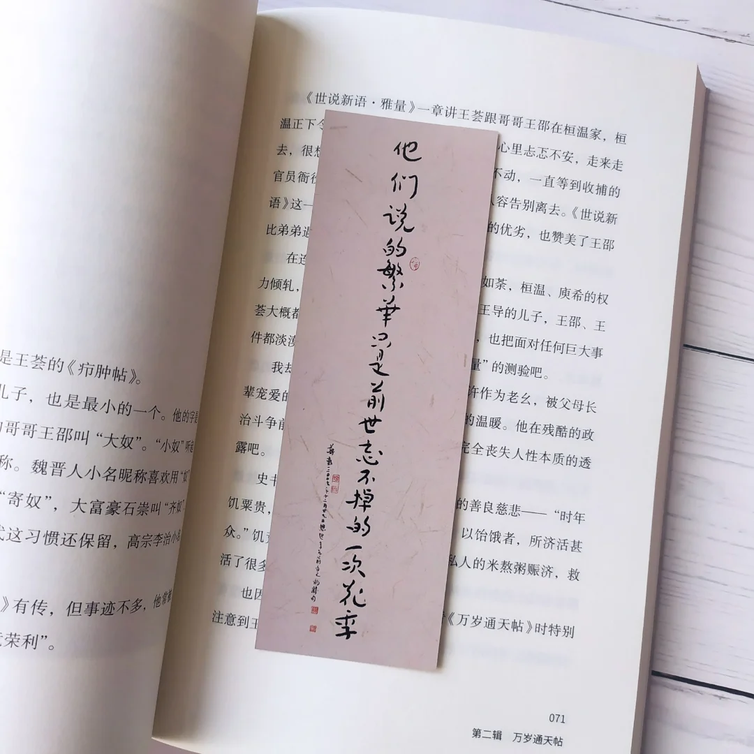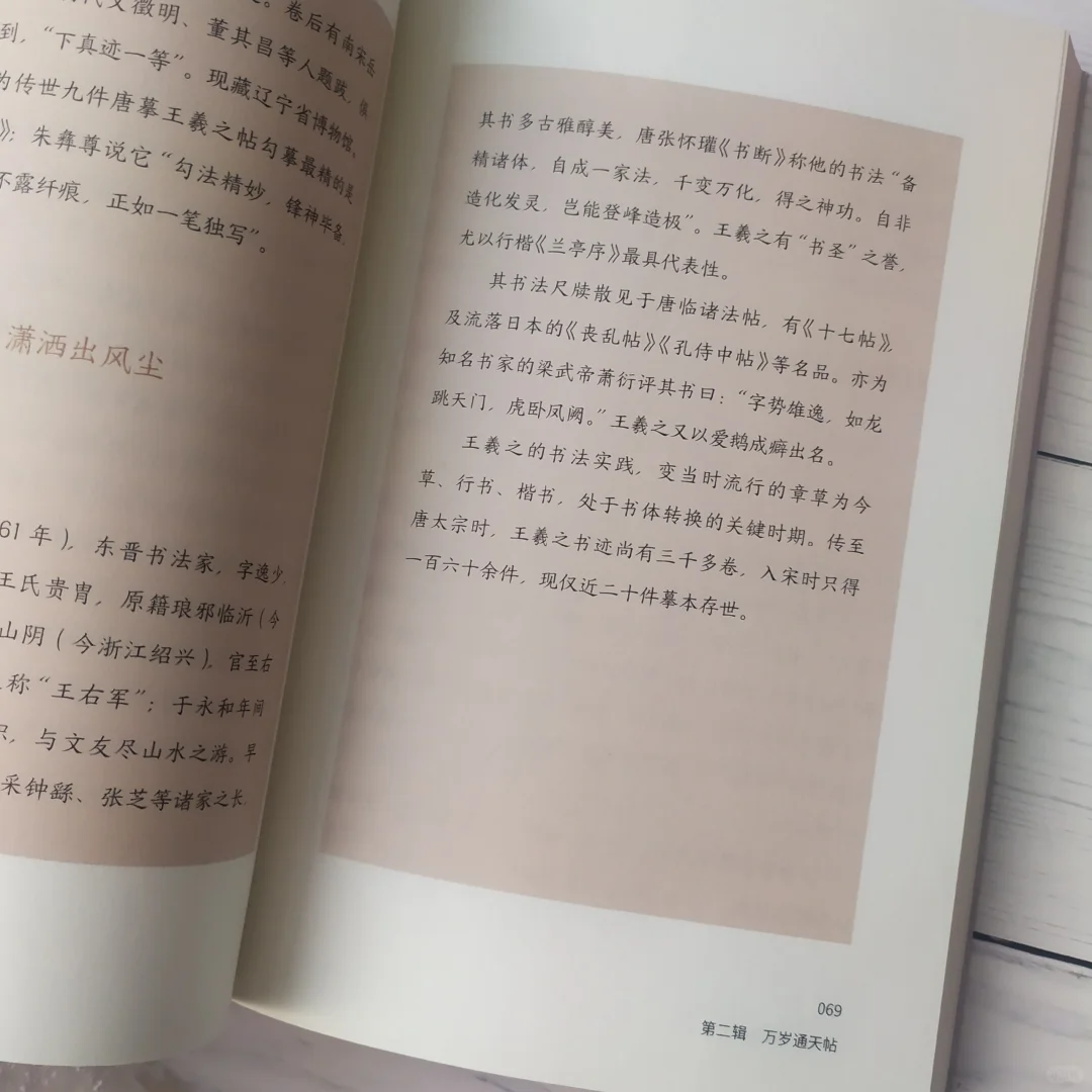 这一本《手帖 南朝岁月》,就是他的一本关于名人手帖的文化论集。手帖在魏晋时期就是文人之间往来的书信,最初并没有书法范本的功能。后来因为王羲之手帖书写你的字实在是太漂亮了,人们是争相收藏。在他去世后的300年间,这些随意的首帖逐渐都被真诚的期待有的装裱成册页卷轴。进而也就转变成了练习书法,欣赏书法的范本。