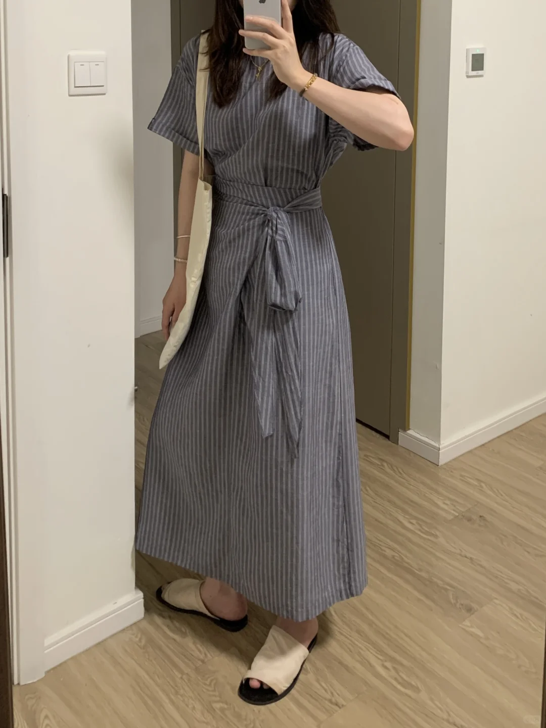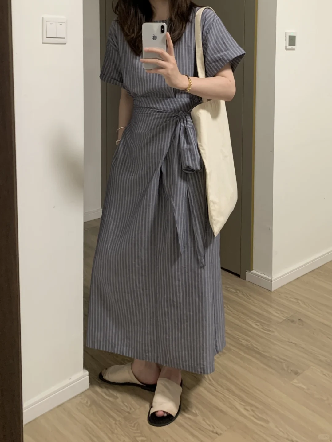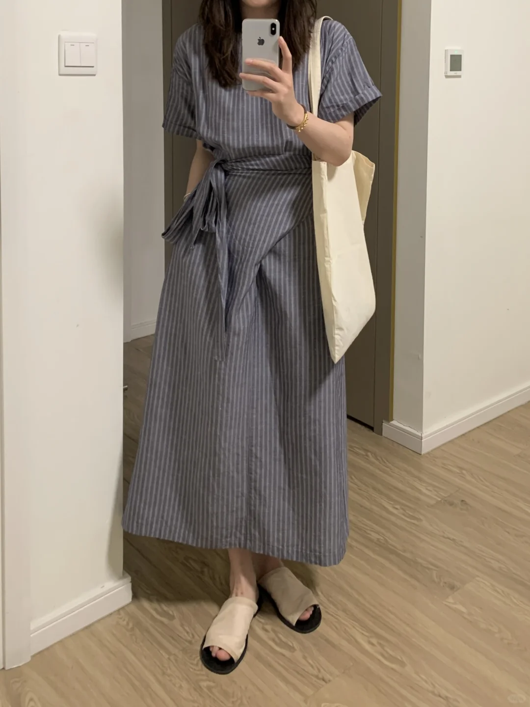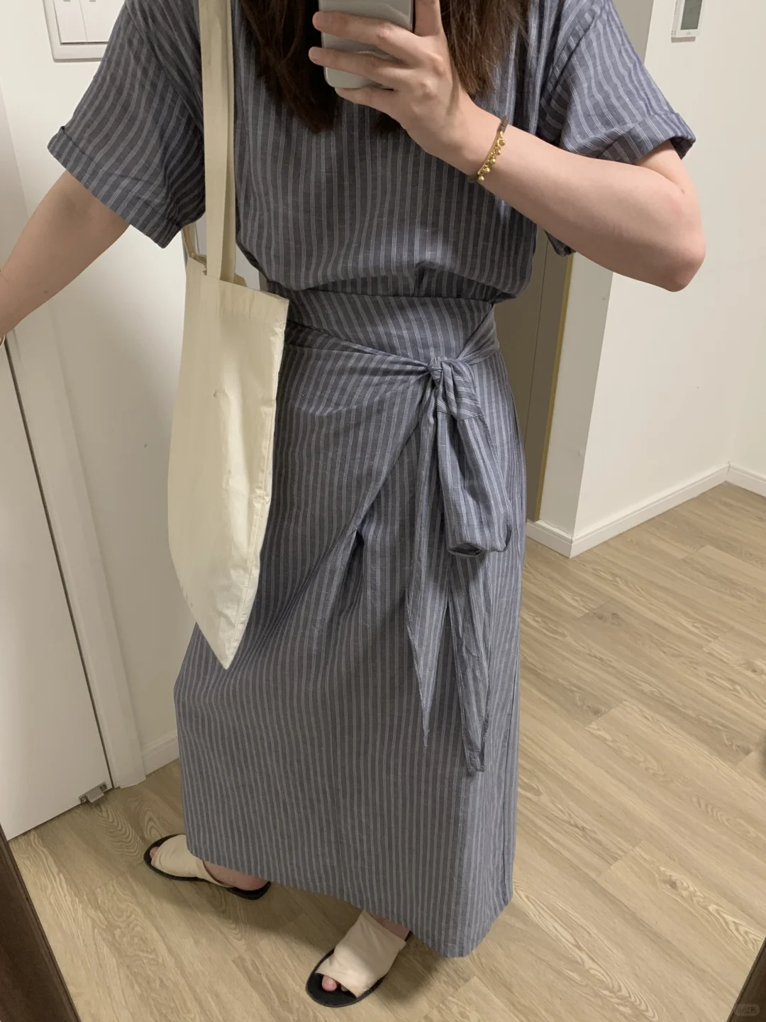 慵懒蓝条纹连衣裙?我才不会告诉你我穿大黑横条纹连衣裙搭蓝色修身裙,美翻了